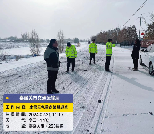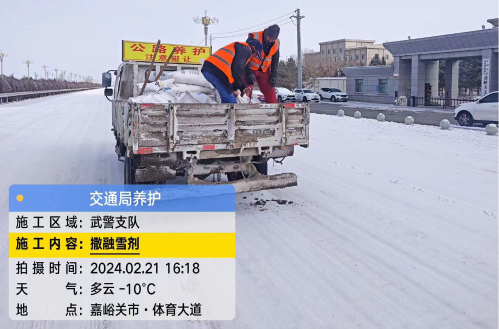 公路养护人员与路政执法人员不畏严寒,主动冲锋除雪一线,秉持“雪不止、人不歇、车不停”的原则,组织养护单位采取机械作业与人工作业相结合的方式,重点对X257线、X301线、X304线、X307线、S595线等急弯陡坡、背阴路面、桥面等易结冰路段撒布防滑料和融雪剂,力争以最快速度除雪除冰,全力保障道路的安全畅通。截至22日上午,累计出动巡查人数28人次,巡查车辆11辆,累计抛洒融雪剂80吨、防滑料58.8吨,抛洒面积53.74万平方米。