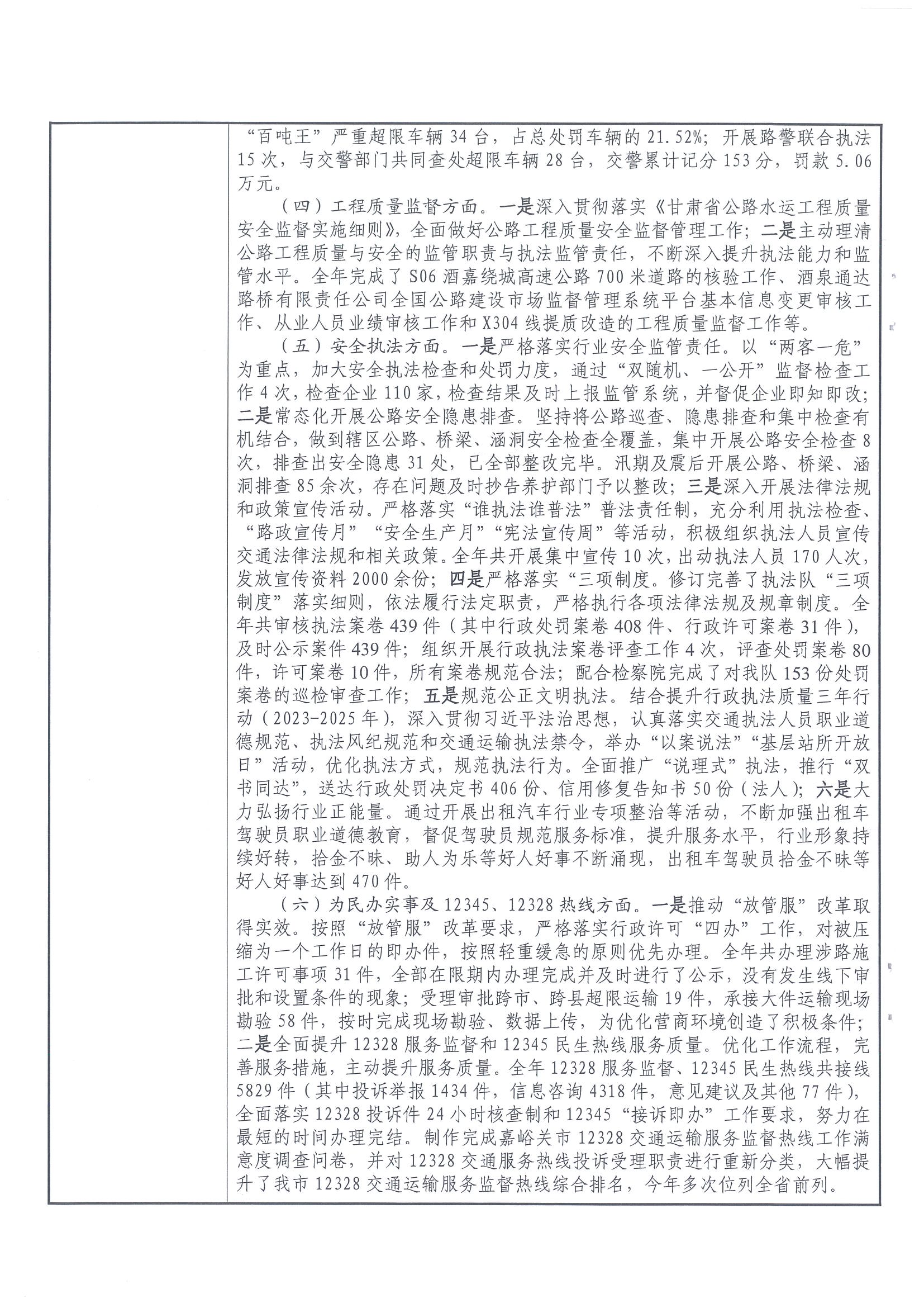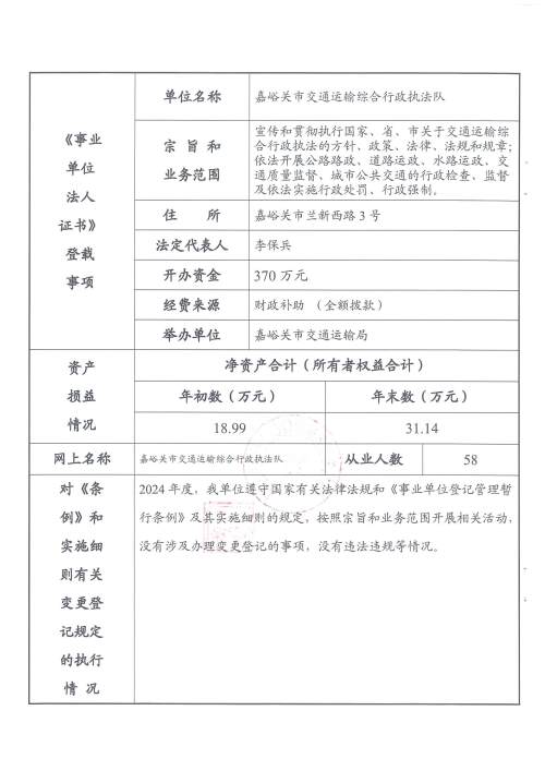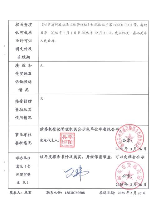 嘉峪关市交通运输综合行政执法队事业单位法人年度报告书(2024)年度