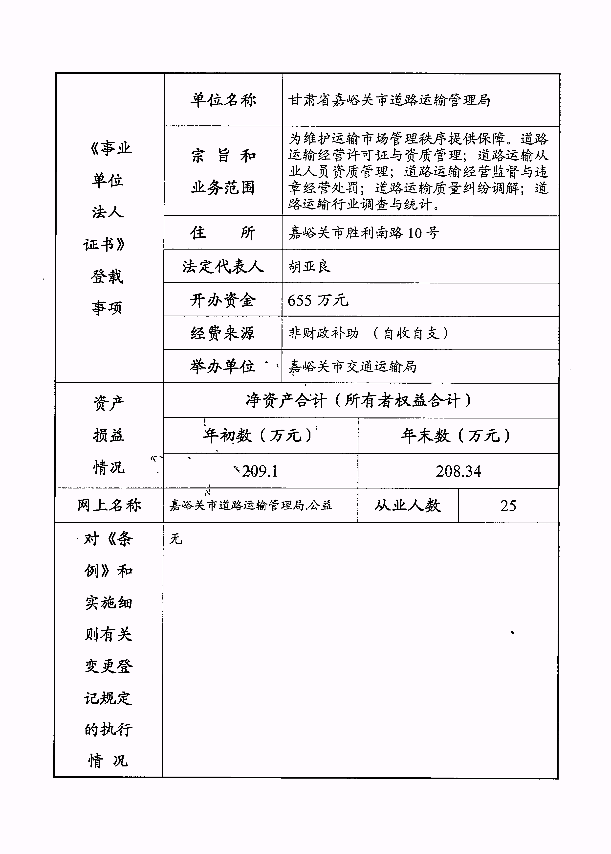 嘉峪关市道路运输管理局事业单位法人年度报告书(2024)年度