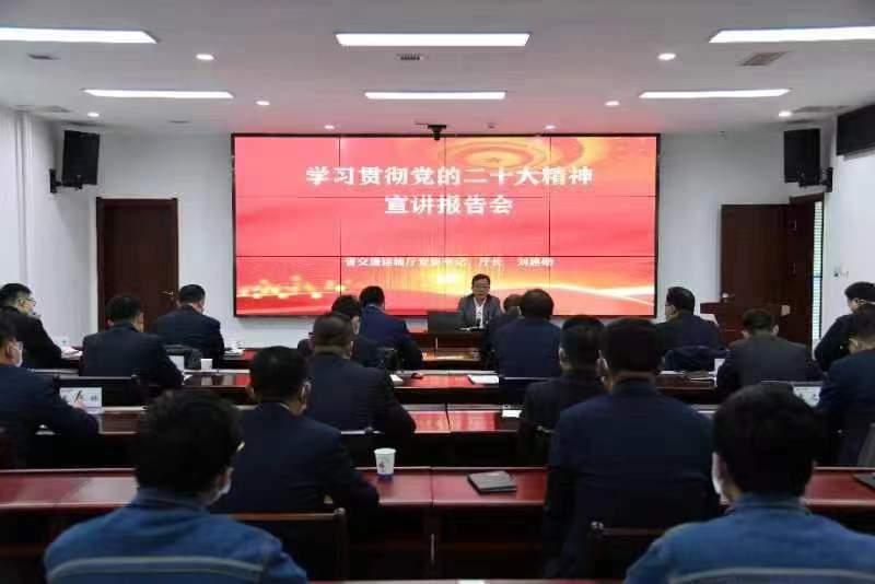 宣讲中,刘建勋重点围绕党的二十大的重大现实意义和深远历史意义、主要内容和作出的战略部署,对党的二十大精神进行了系统深入阐释。他密切联系实际,从我省交通投资、公路网密度、运输网络,以及交通科技创新与成果转换、支撑经济发展的作用等方面,介绍了新时代10年甘肃及甘肃交通的历史性进步与发展。他强调,要推动党的二十大精神进企业、进车间、进班组、进工地,与基层一线职工面对面一起学习宣传贯彻党的二十大精神,结合当前实际,全力做好疫情防控、保通保畅、安全生产、科技创新、扩大有效投资、纾困解难等工作。