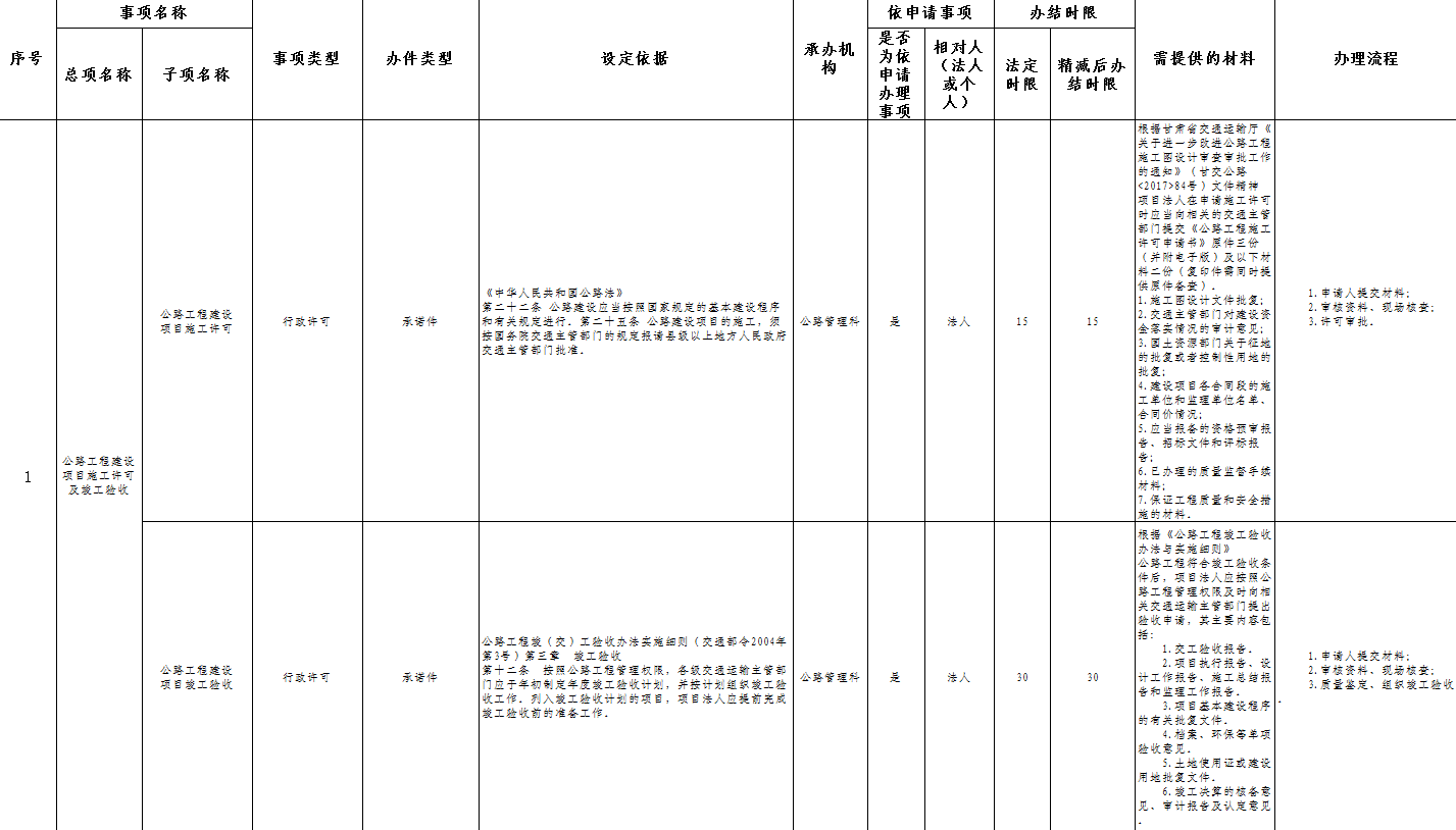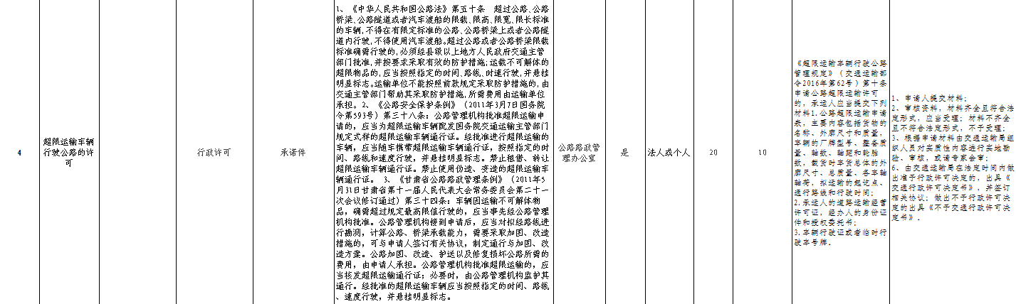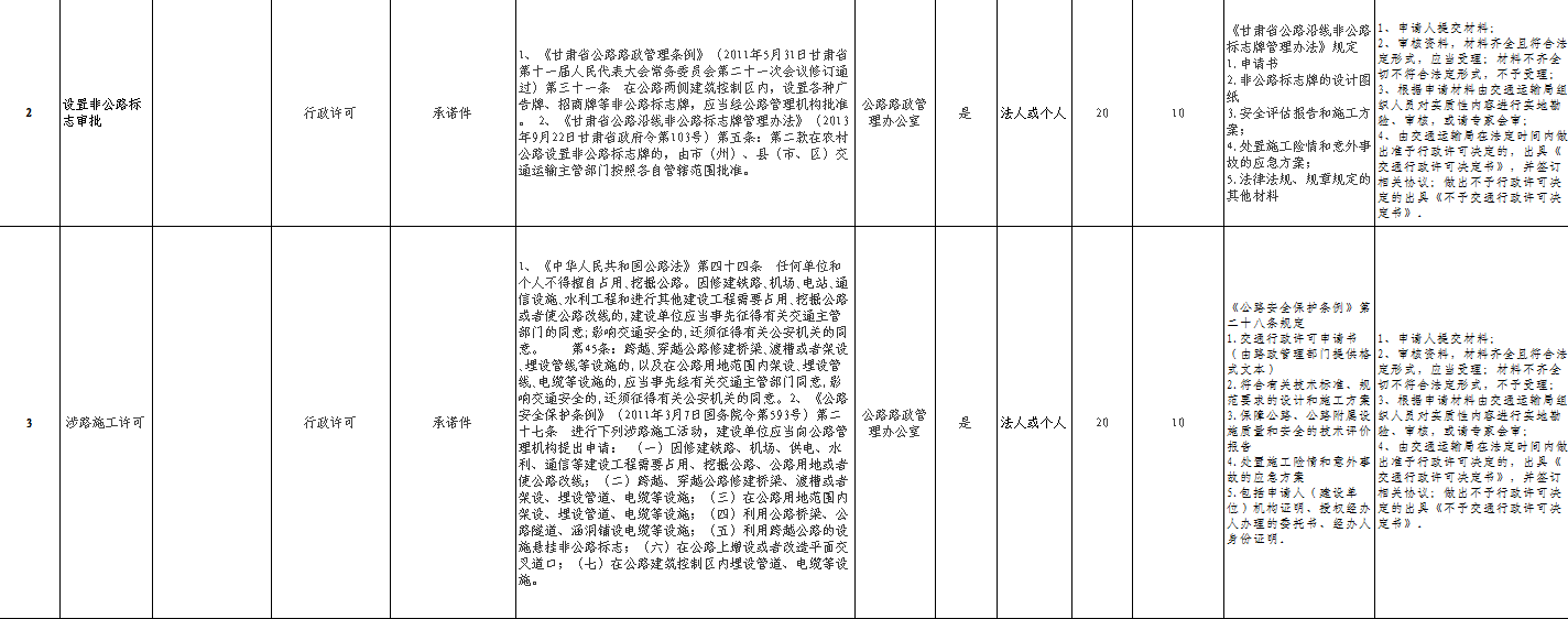 嘉峪关市交通运输局行政权力事项分表(行政许可类)