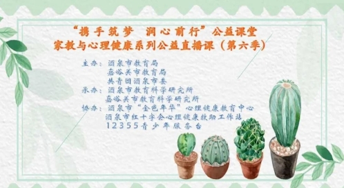 “携手筑梦·润心前行”家庭教育与心理健康公益直播课,由嘉峪关市教育局、酒泉市教育局、共青团酒泉市委主办,嘉峪关市教育科学研究所和酒泉市教育科学研究所承办,酒泉市“金色年华”心理健康教育中心、酒泉市红十字会心理健康救助工作站、12355 青 少 年 服 务 台协办,是酒嘉两地教育部门主动融入“酒嘉双城经济圈”建设的重要举措,旨在整合两地家庭教育、心理健康教育师资力量,传递家庭教育和专业心理知识,引导广大家长树立正确家庭教育观念,提升家庭教育能力,守护孩子心理健康,培养孩子良好的学习习惯和健康的生活方式,促进青少年学生全面健康发展。