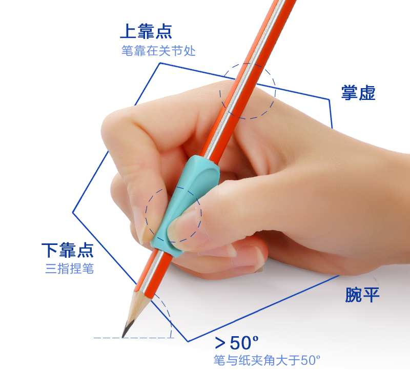 一寸距:就是握笔的拇指、食指、中指离笔尖的距离都是一寸,约3厘米(确保视野宽阔,不致引发勾手腕、低头歪脑眼近视)。
