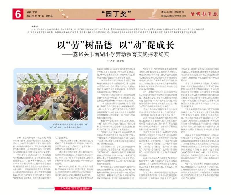 以“劳”树品德 以“动”促成长——嘉峪关市南湖小学劳动教育实践探索纪实