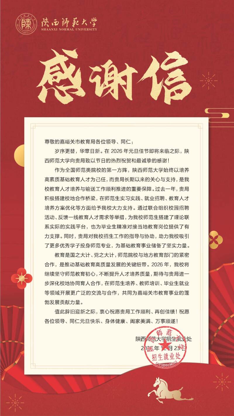 近年来,嘉峪关市持续加强与陕西师范大学的合作,充分发挥双方各自优势,聚焦实习实践、教师培养等关键领域,推动人才共育、发展共谋,实现了资源共享、优势互补。