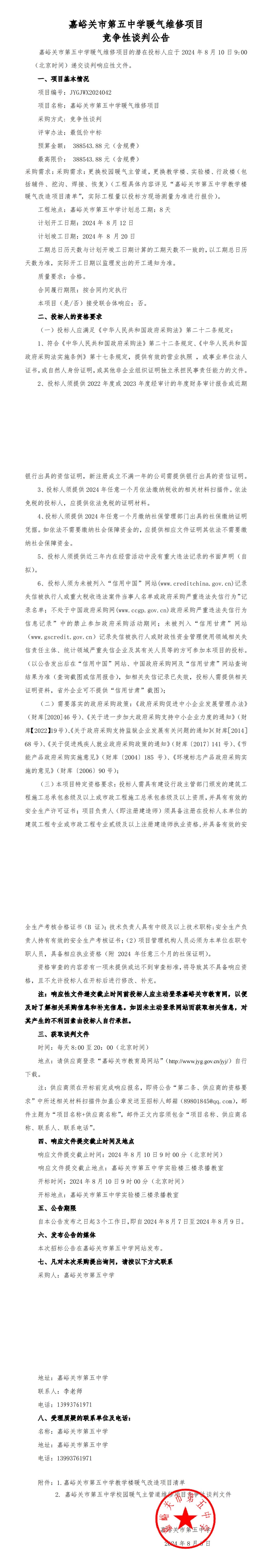嘉峪关市第五中学暖气维修项目竞争性谈判公告