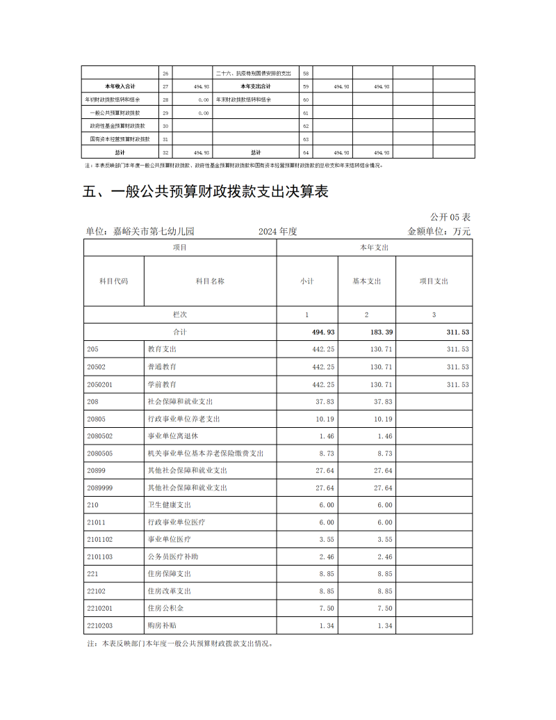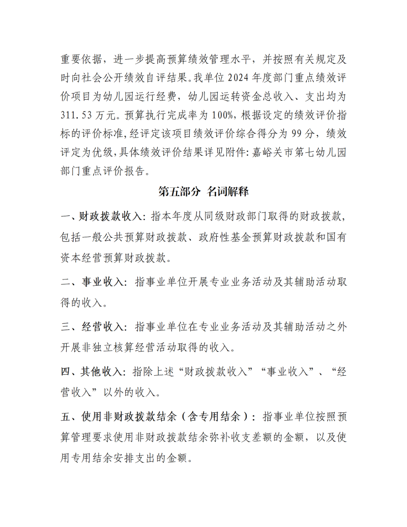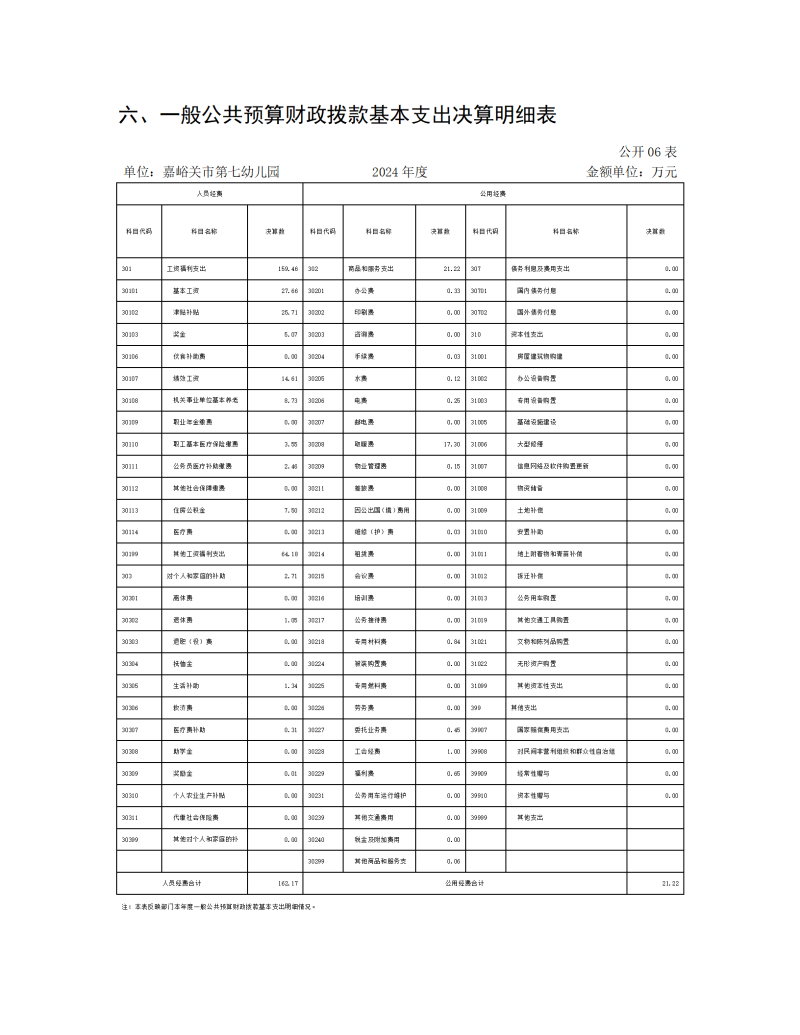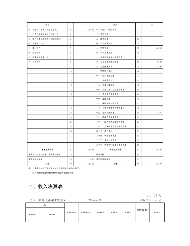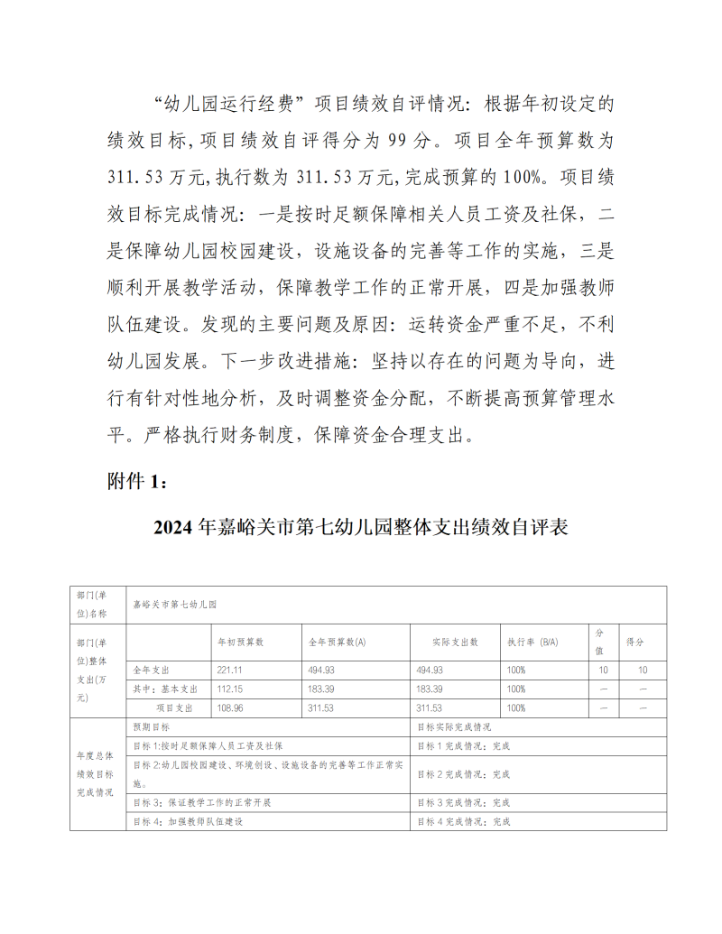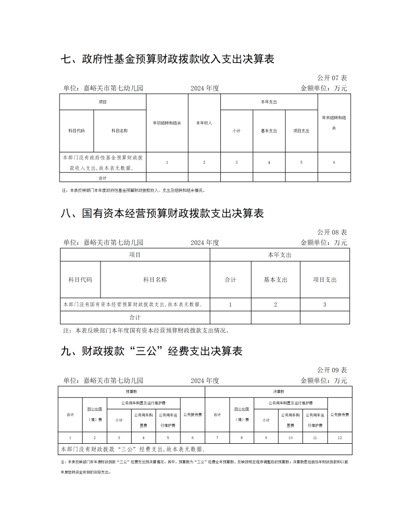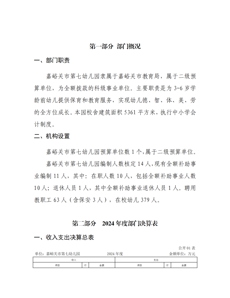 嘉峪关市第七幼儿园2024年公开报告(金额单位:万元)