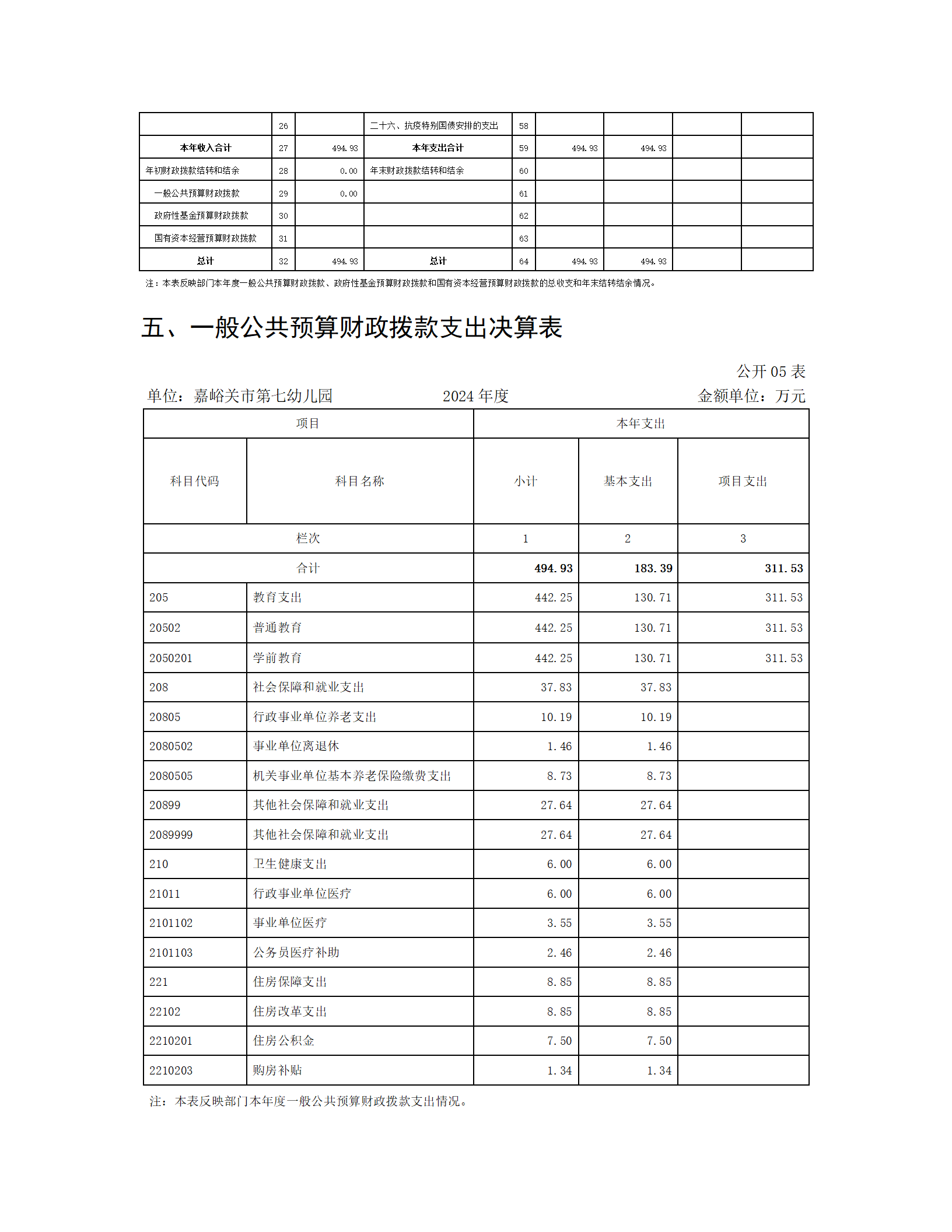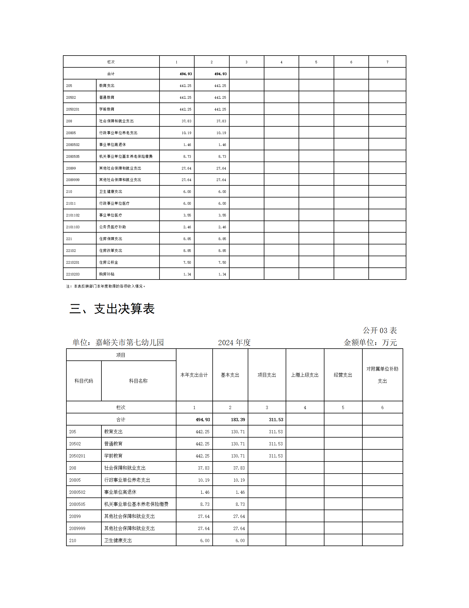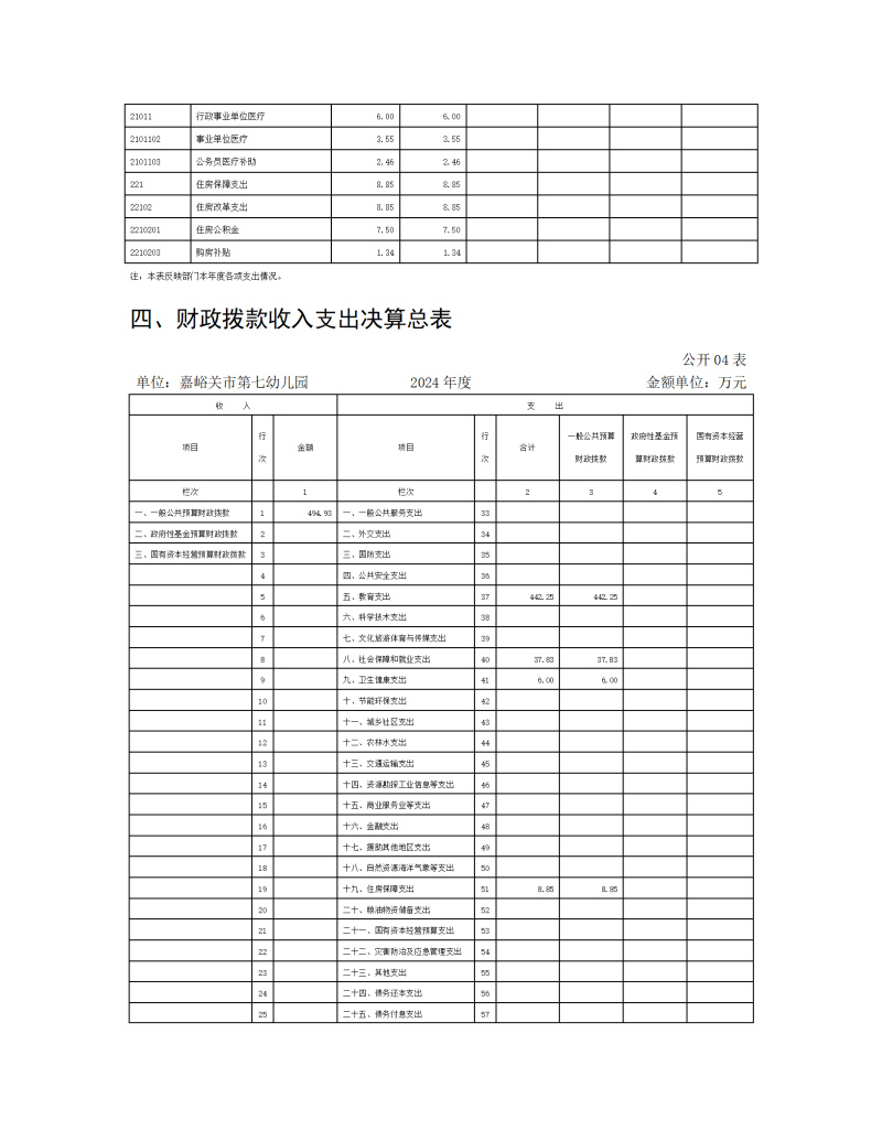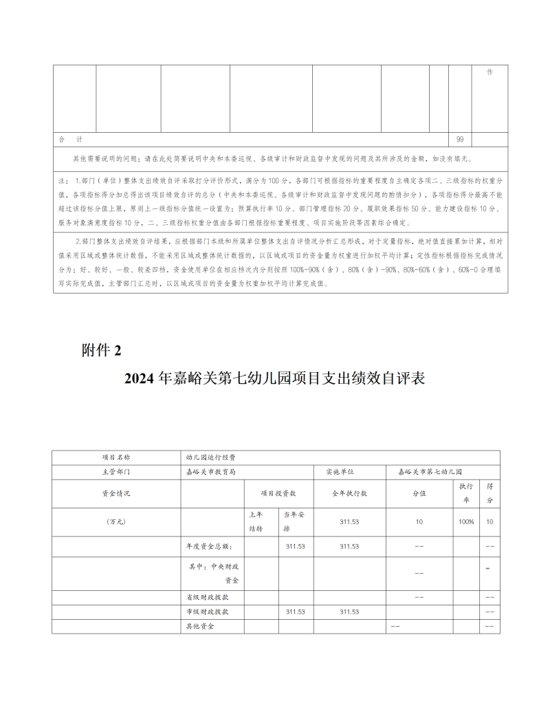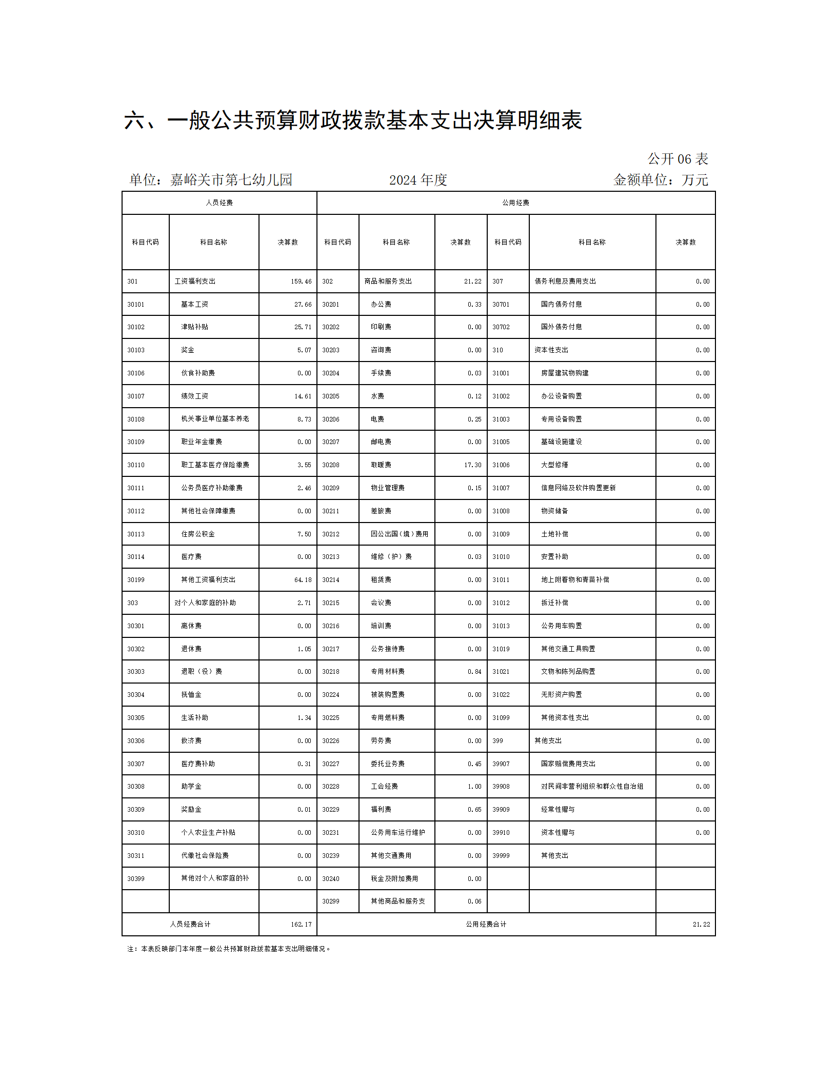 嘉峪关市第七幼儿园2024年公开报告(金额单位:万元)