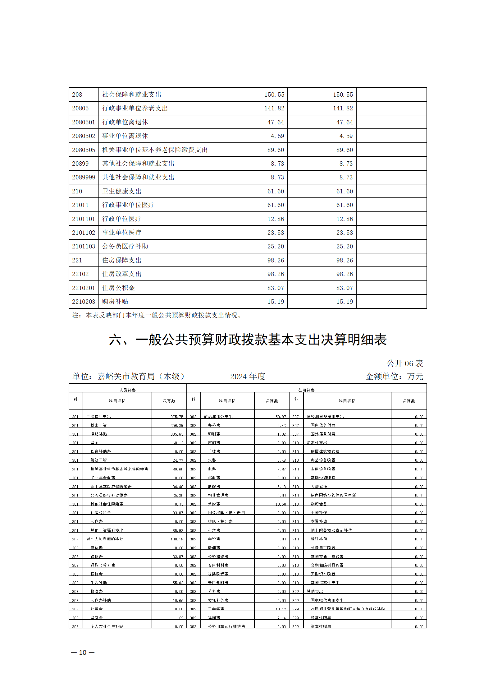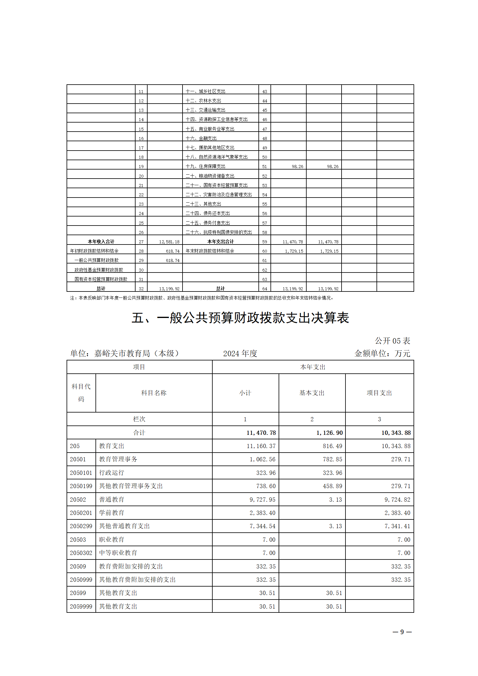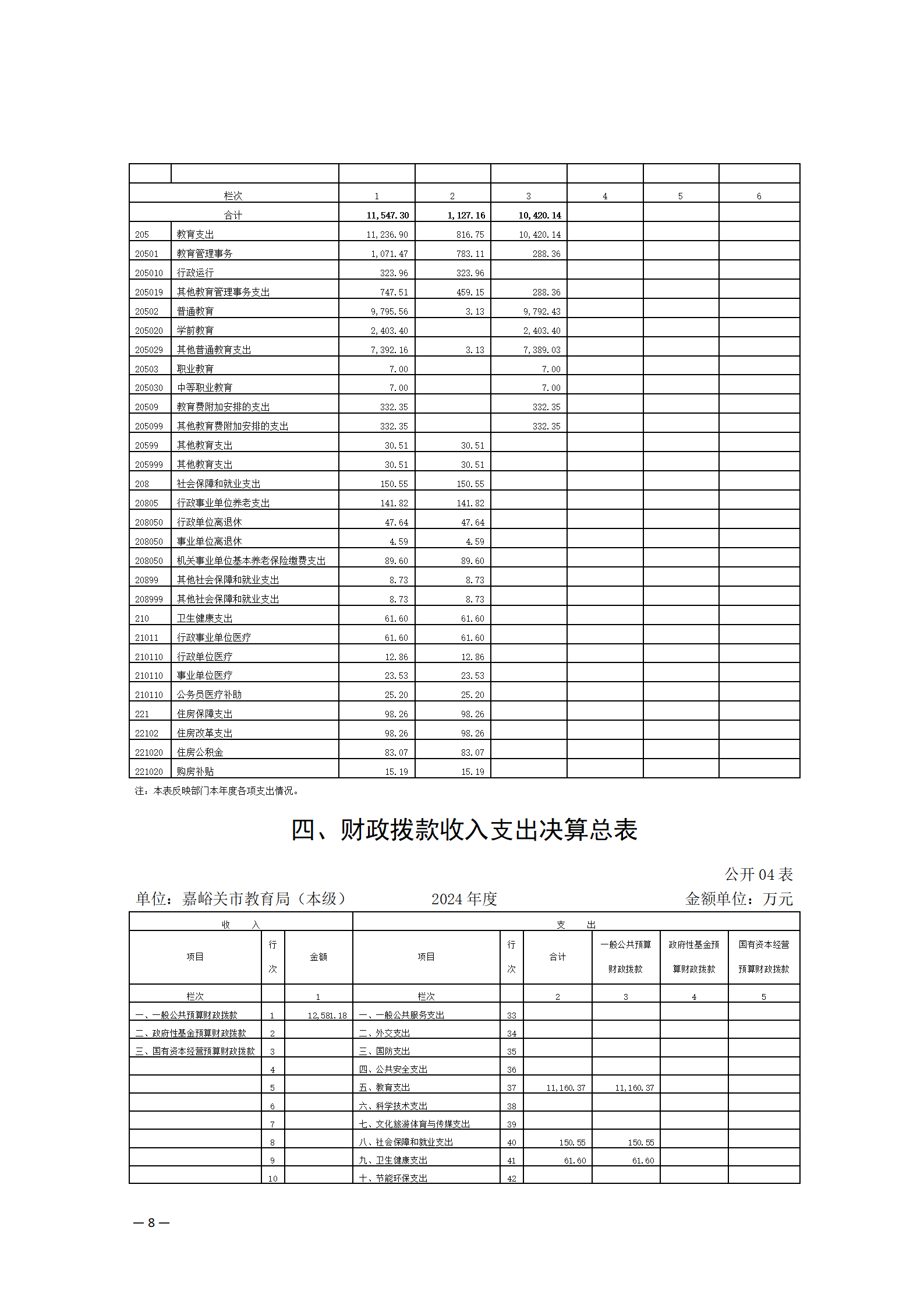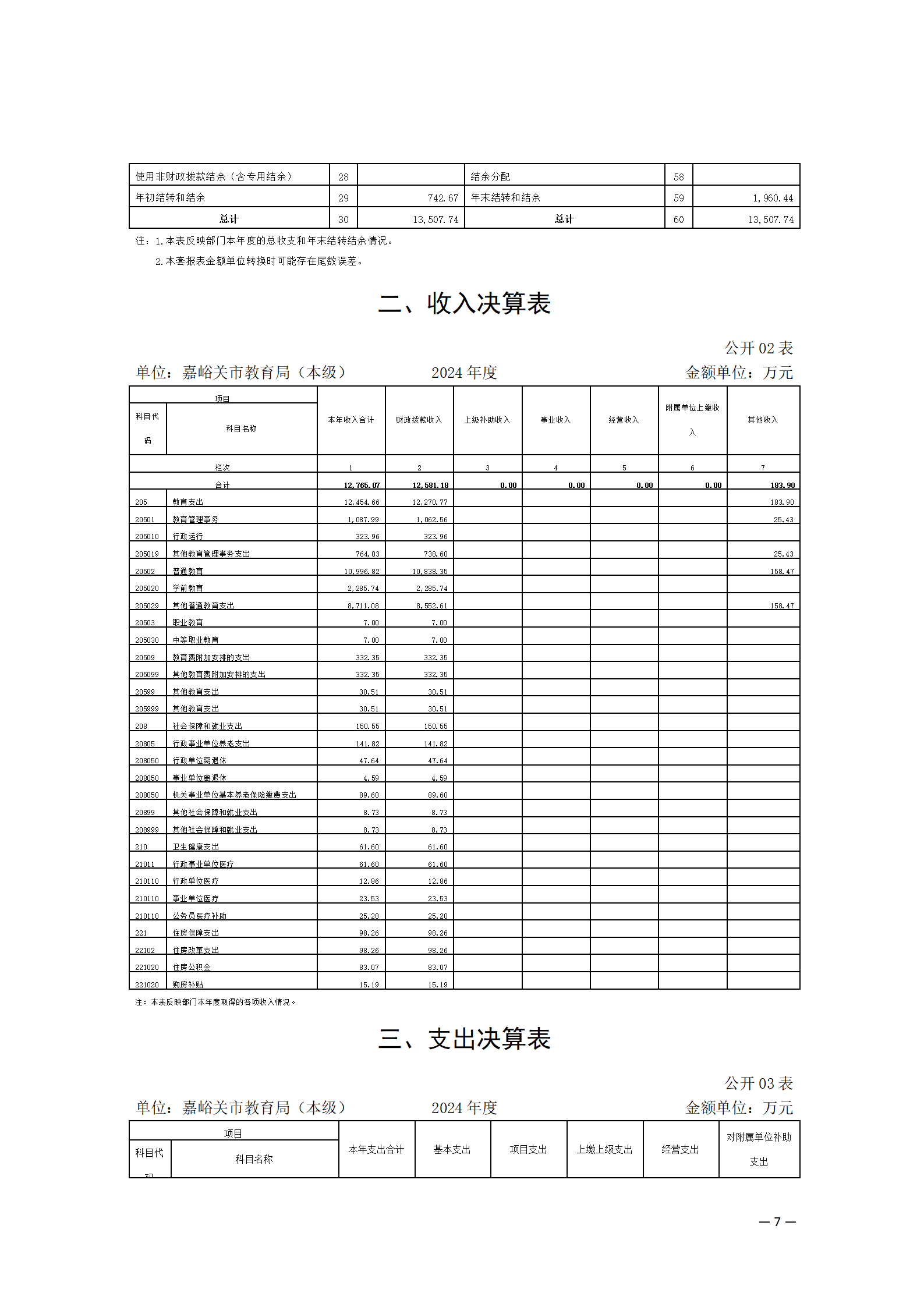 嘉峪关市教育局(本级)2024年决算公开报告(金额单位:万元)