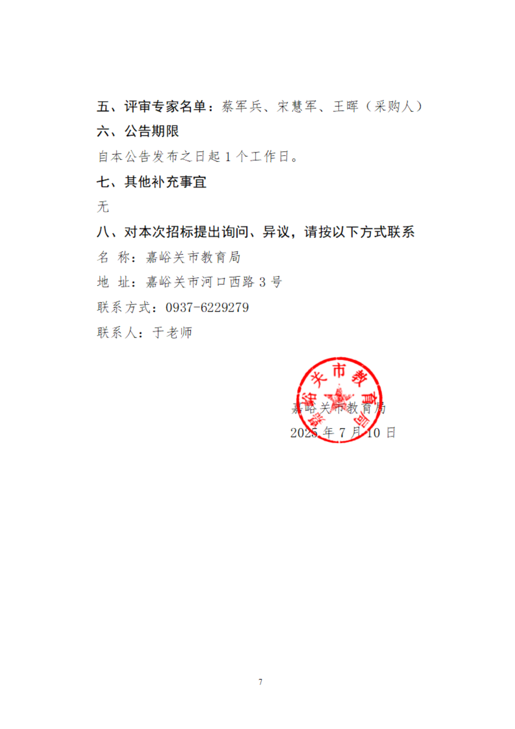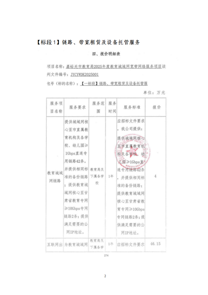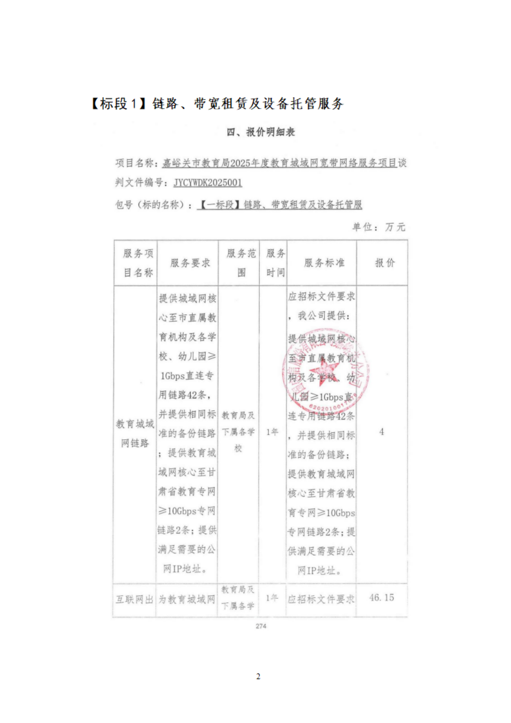 嘉峪关市教育局2025年度教育城域网宽带网络服务项目成交公告