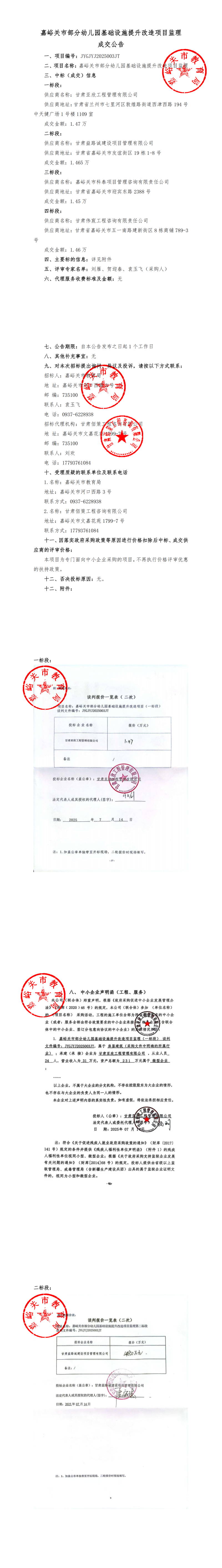 嘉峪关市部分幼儿园基础设施提升改造项目监理成交公告