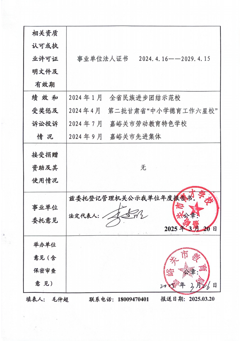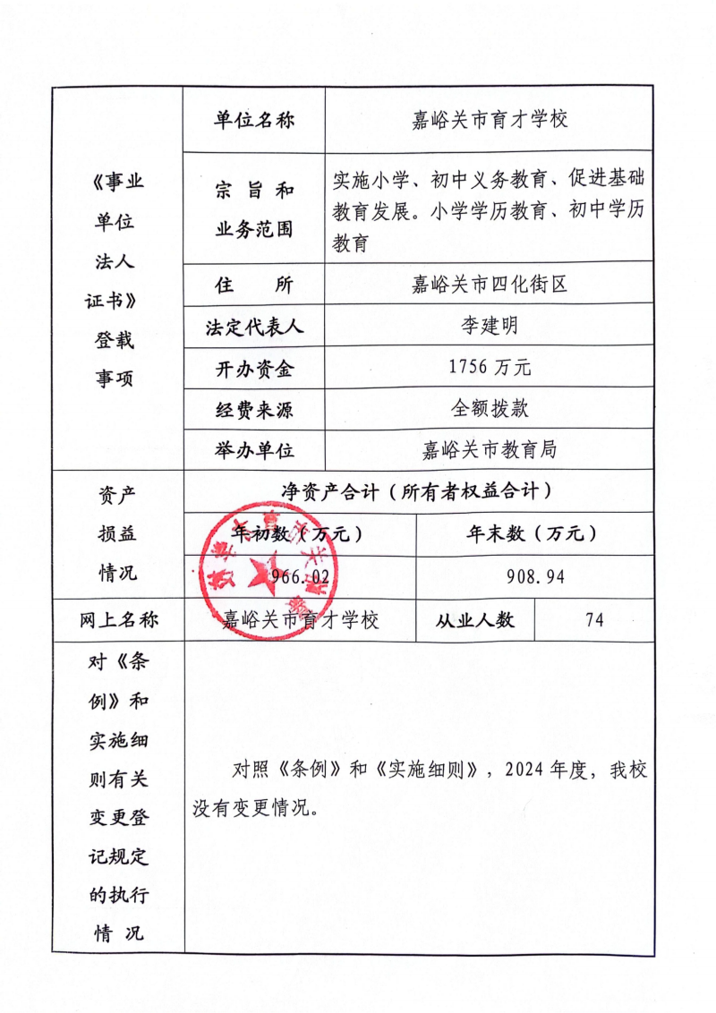 嘉峪关市育才学校事业单位法人年度报告书(2024年度)