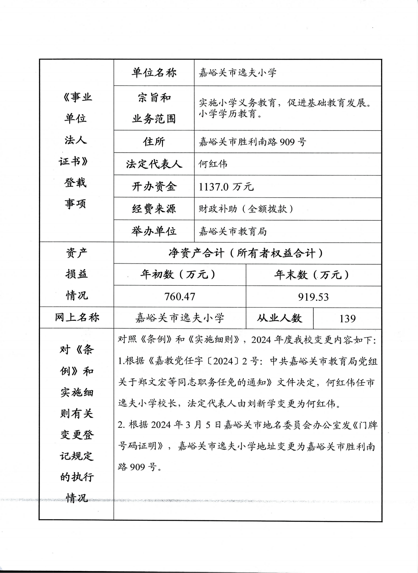 嘉峪关市逸夫小学事业单位法人年度报告书(2024年度)