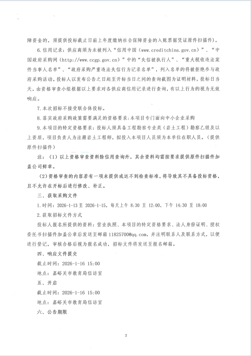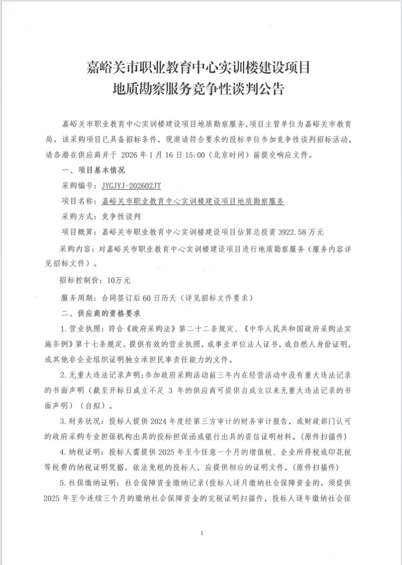 嘉峪关市职业教育中心实训楼建设项目地质勘察服务竞争性谈判公告