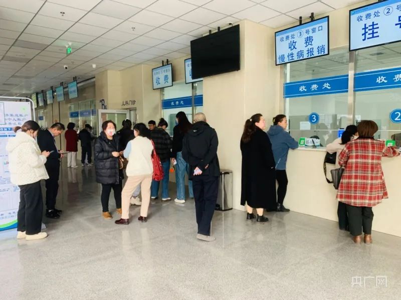 病患及家属正在排队缴费(央广网记者 李红军 摄)