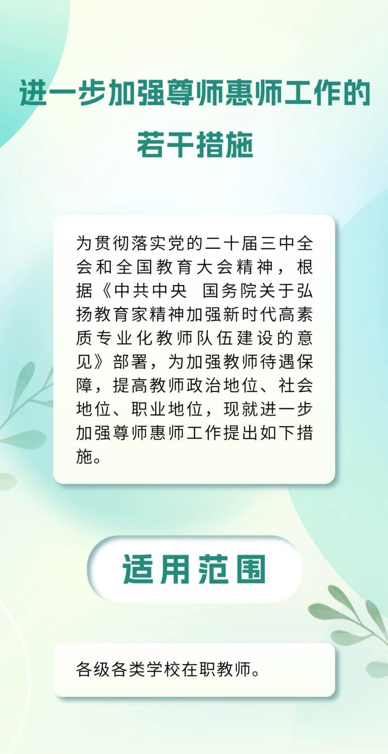 图解丨住房保障、免费体检、乘车优惠!教育部等七部门联合推出尊师惠师“大礼包”