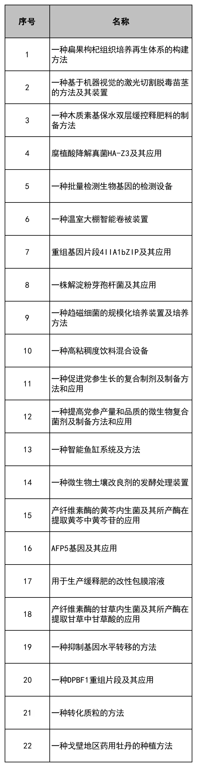 嘉峪关市·高校发明专利信息(第三批:环保、生物、农业领域)