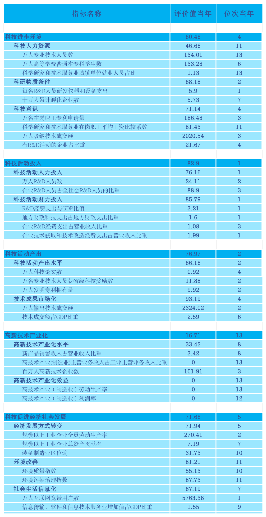 2022年综合科技进步水平指数