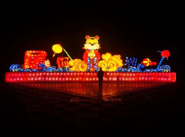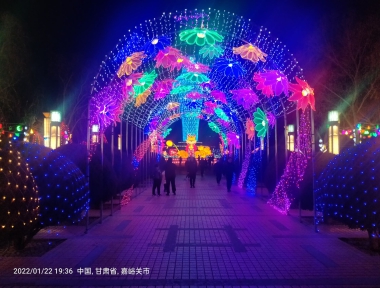 虎年春节临近,为了给市民营造一个喜庆祥和的节日氛围,近日,市林草局东湖生态旅游景区精心准备,在景区北广场处完成了16.5米长的“属你最潮”虎年花灯及18米长的“花开富贵”两个大型组合长廊花灯,同时在景区入口及西部明珠气象塔前挂串灯、网灯、LED橘子灯、苹果灯、五角星灯、航天灯、网球、雪花等各种灯饰1300余串(个)。