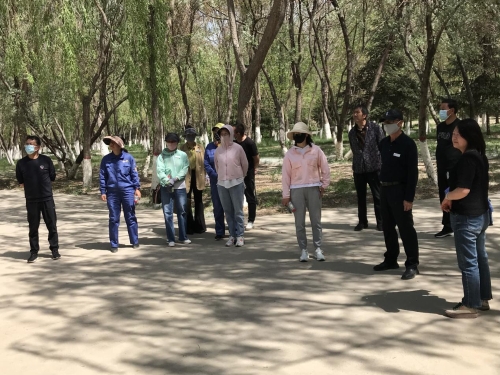 在讨赖河园林绿化管理处,观摩团一行先后到讨赖河生态园、明珠文化生态园等公园景区,实地观摩了1、2、3、4、5号湖沿线绿化养护、卫生保洁及监察人员热心服务、安全巡查等情况,了解和学习了绿化管护示范区设计思路、绿植修剪技术、病虫害防治做法等。