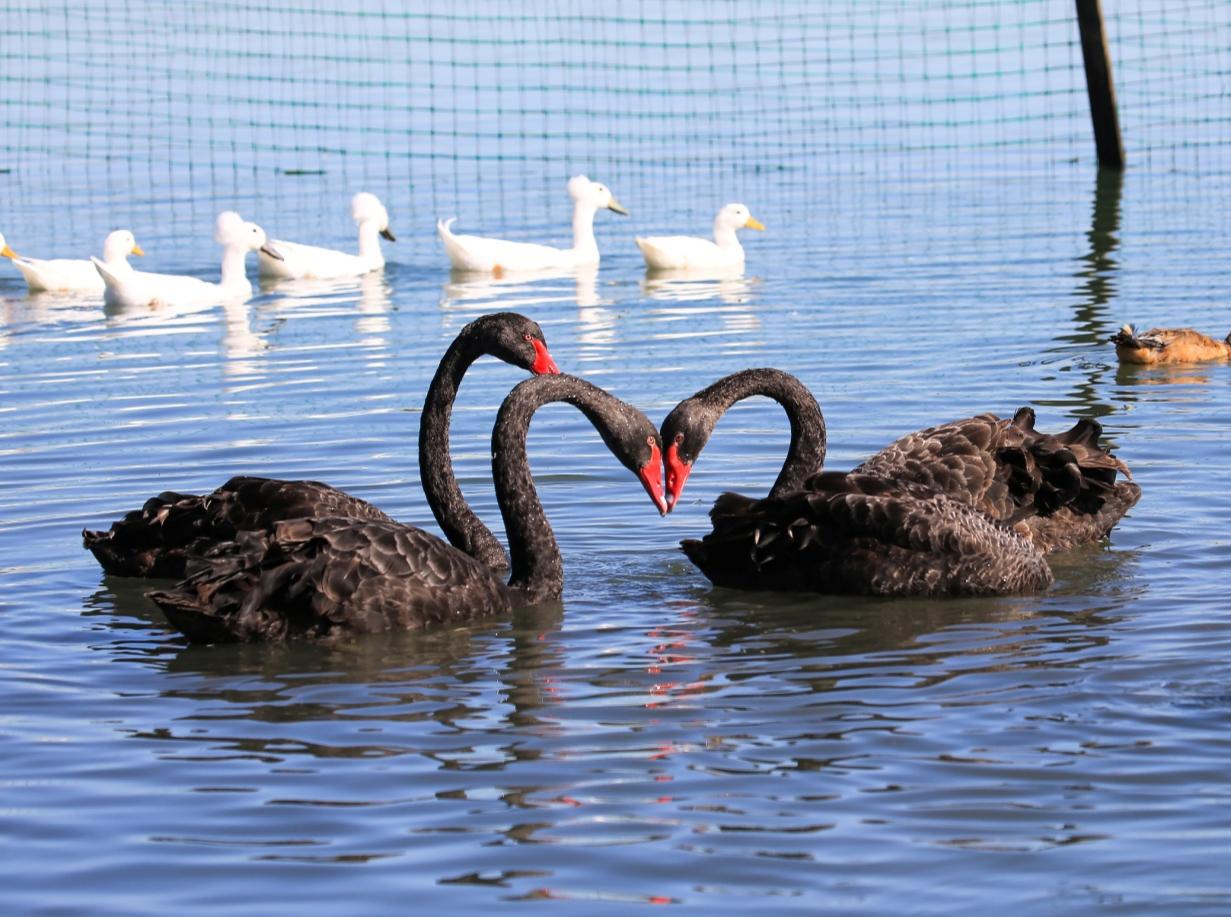 黑天鹅原产于澳洲,是天鹅家族中的重要一员,为世界著名观赏珍禽。具有较强游牧性,迁移模式不规律,主要取决于气候条件,迁徙时会组成成千上万的大团体。食物几乎完全是植物,以各种水生植物和藻类为主。常栖息于海岸、海湾、湖泊等水域,成对或结群活动。在繁殖期喜欢栖息在开阔的、食物丰富的浅水水域中,如富有水生植物的湖泊、水塘和流速缓慢的河流,特别是在针叶林带,喜桦树林带和无林的高原湖泊与水塘,冬季则主要栖息在多草的大型湖泊、水库、水塘、河流、海滩和开阔的农田地带。分布于澳洲西南部、南部、东部地区。