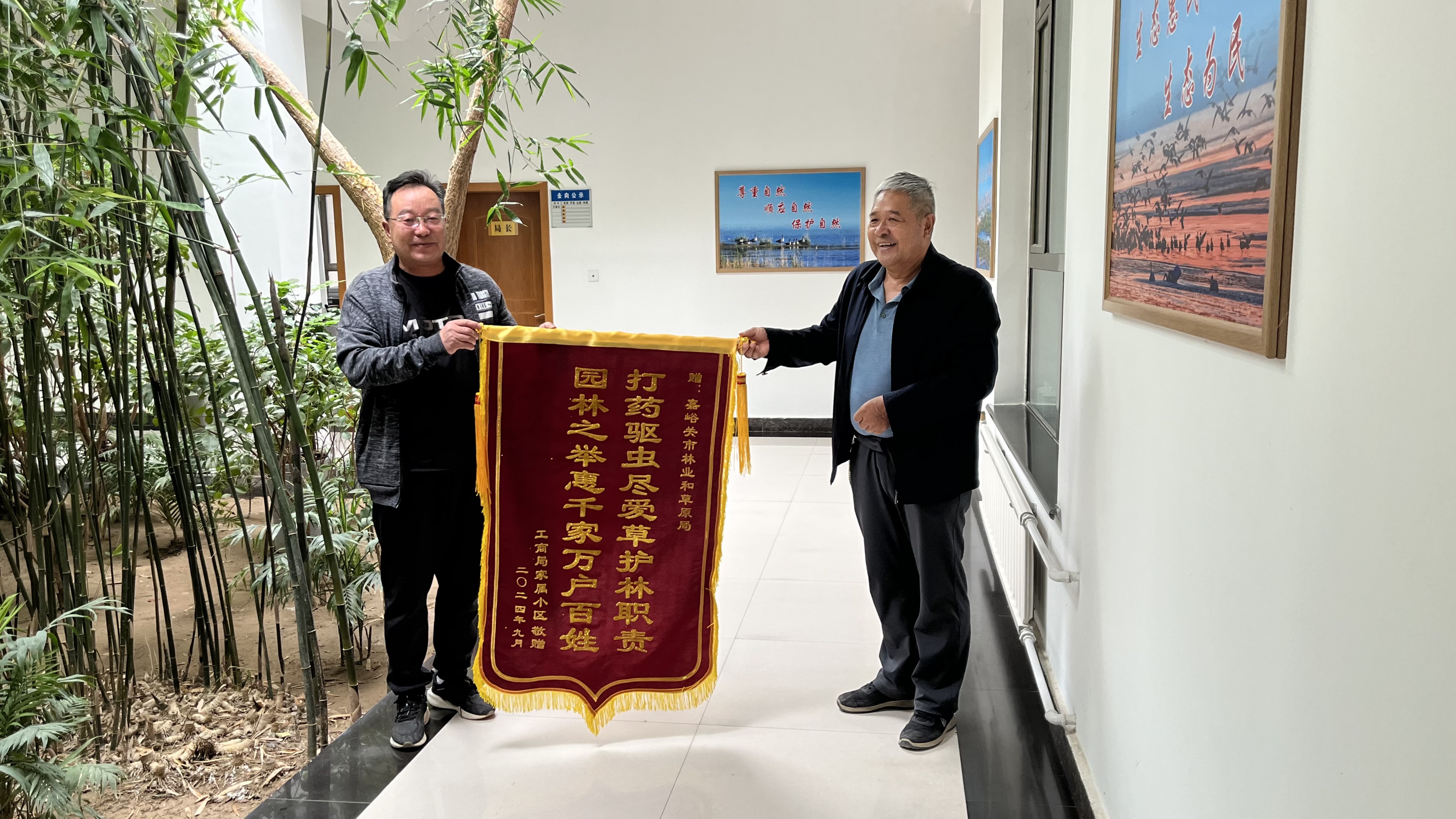 “民之所忧,我必念之;民之所盼,我必行之”,这一面锦旗,不仅是一份荣誉和信任,更是一份责任和担当。下一步,市林草局将继续坚持以人民为中心的发展思想,践行“绿水青山就是金山银山”发展理念,加快打造绿色发展典范城市,现固我市生态成果,推动林业有害生物防控工作创新发展。