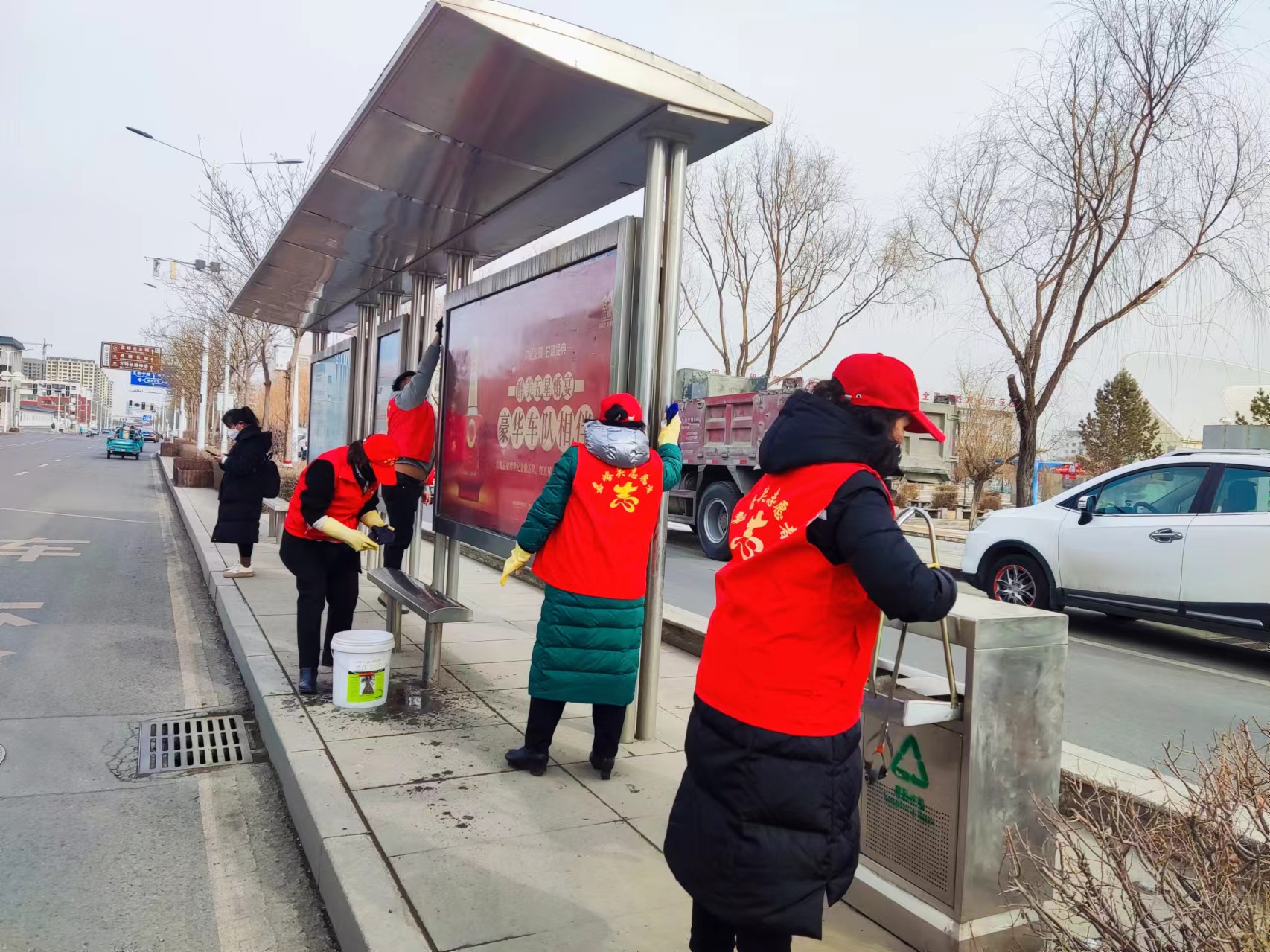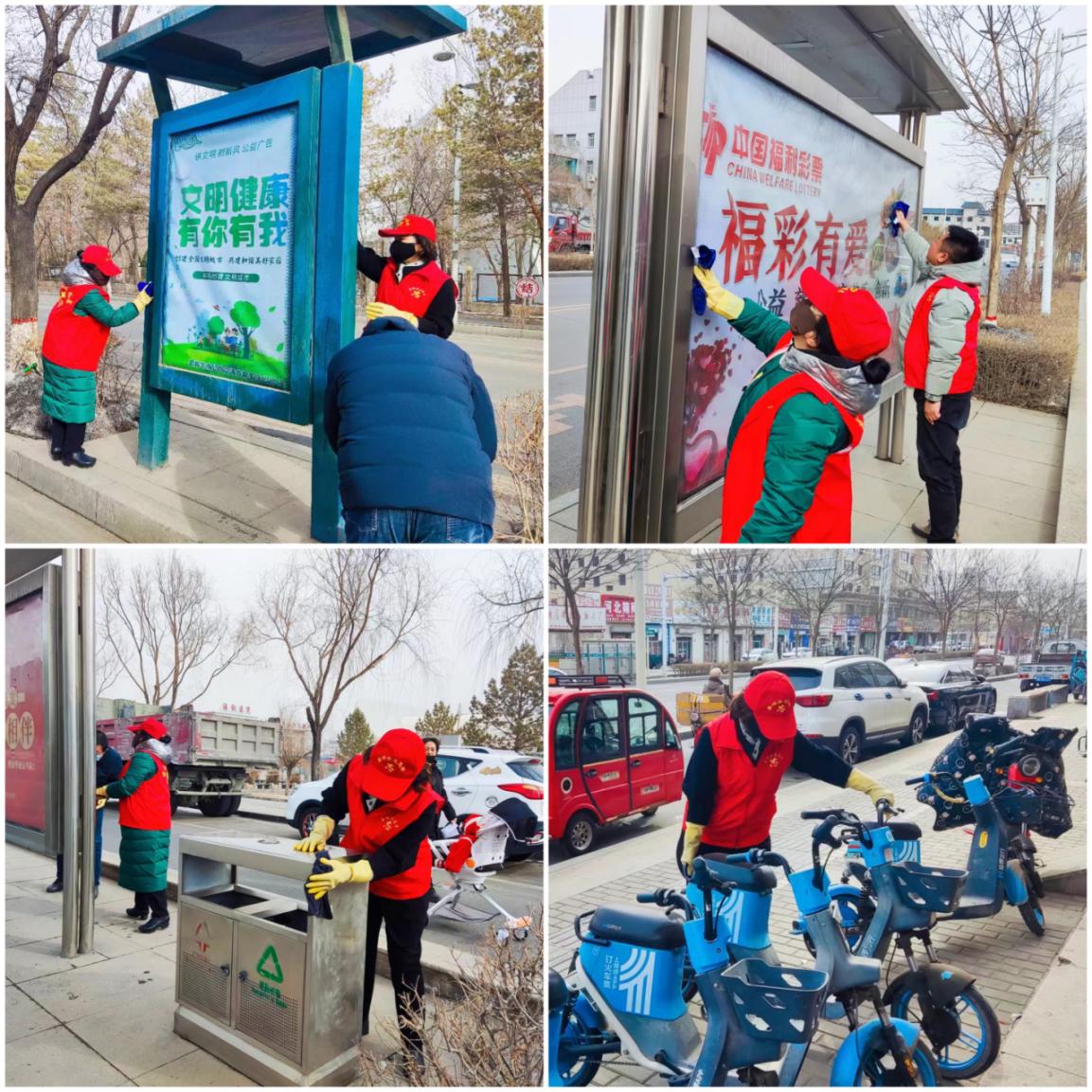志愿者身穿红色马甲,手持各种清洁工具,分工合作,配合默契,有的专心清扫路面,确保干净整洁;有的整理乱停乱放共享单车,使其整齐划一;有的认真擦洗公交站点和公共座椅、垃圾桶,为市民提供整洁的乘车环境,还有的志愿者细心捡拾绿化带内烟头、废纸等垃圾,保护着城市的绿色生态。他们一边清理,一边向过往的市民宣传环保理念,呼吁大家共同爱护环境,积极投身到学雷锋志愿服务活动中来。