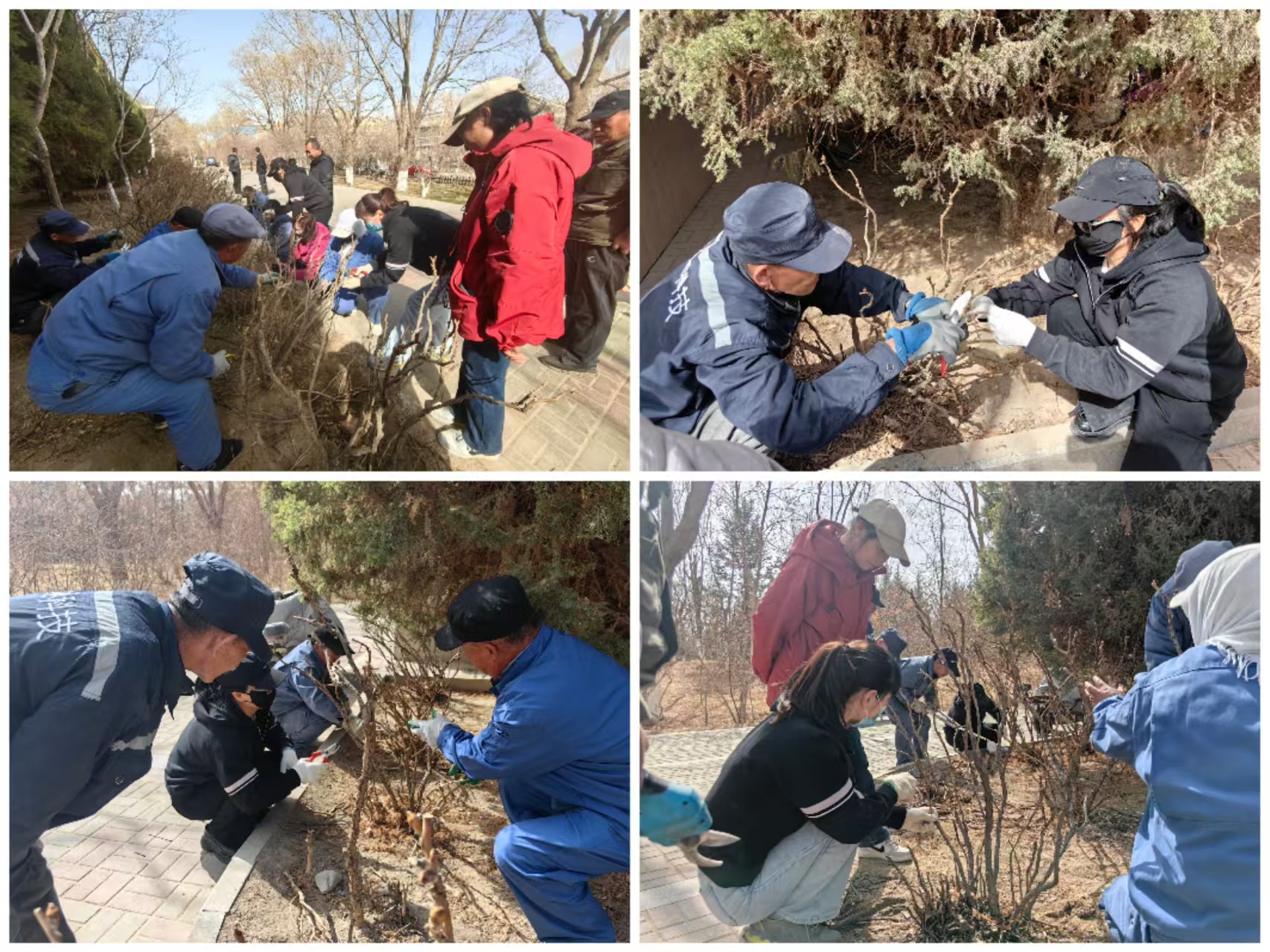 培训现场,技术人员结合牡丹生长习性,系统讲解了春季修剪的重要意义与技术要点。针对牡丹枝条分布与花芽分化规律,重点强调“去弱留强、内疏外剪”的修剪原则,指导养护人员观察植株形态,科学判断枝条生长态势。在实操环节,技术人员手持修枝剪现场示范,从枯枝清理到萌蘖枝疏剪,从保留健壮芽点到调整株型结构,每一步操作都细致演示,并耐心解答技术疑问。大家通过“学中干、干中学”,逐步掌握了控制花芽数量、保持通风透光的修剪技巧,原本杂乱的牡丹丛变得株型饱满、整齐美观。