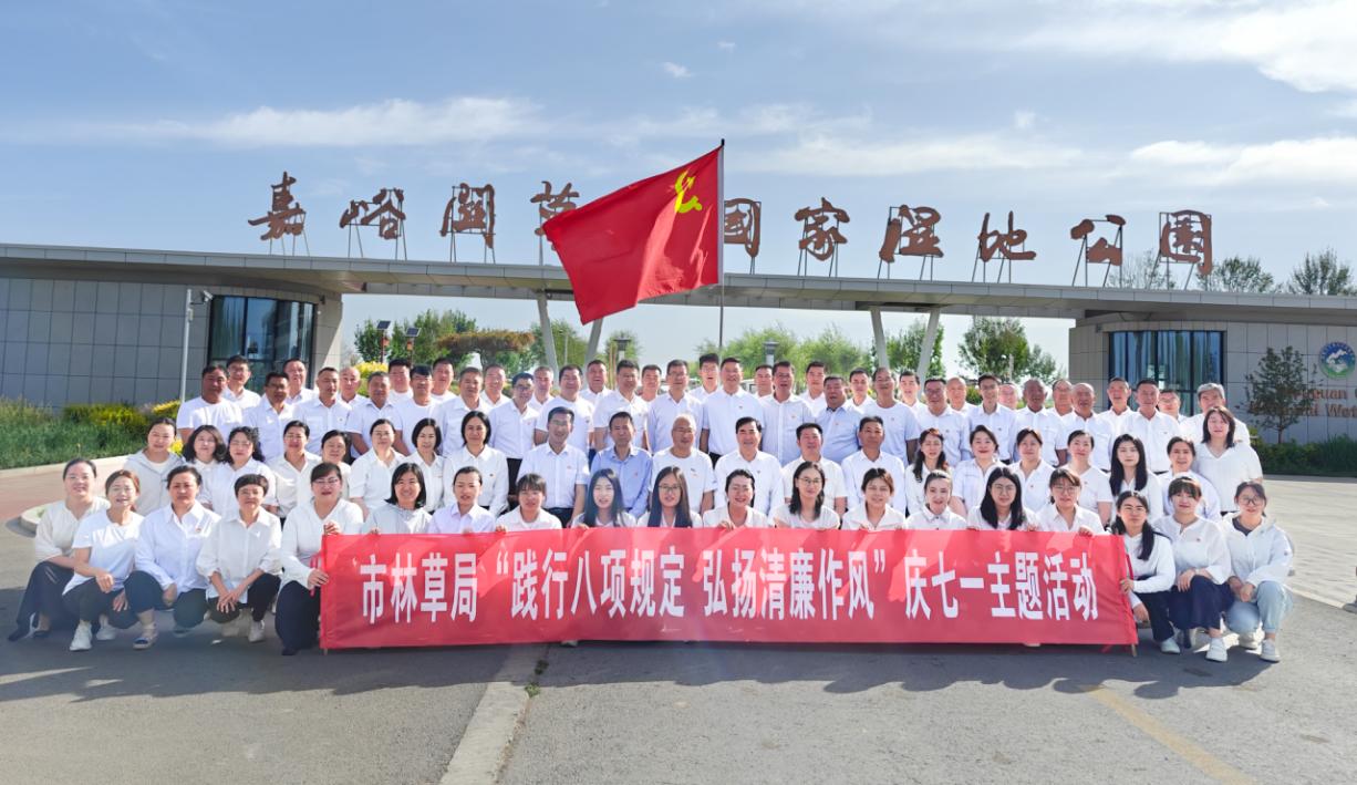 为庆祝中国共产党成立104 周年,传承红色基因,持续推进党风廉政建设,落实全面从严治党要求,6月26日,市林草局组织全体党员及年轻干部赴草湖国家湿地公园开展“践行八项规定 弘扬清廉作风”庆七一主题活动。