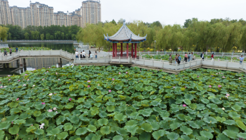 此刻的迎宾湖,每一簇荷花都是会呼吸的风景。指尖掠过清凉的湖水,感受花瓣轻触脸庞的温柔;也能在环湖步道驻足,这里的每一寸时光,都浸润着荷花从青涩到盛放的诗意,仿佛置身于一个世外桃源。