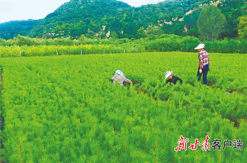 宁县盘克镇前渠村群众在苗林地务工。新甘肃·甘肃日报通讯员 李纲陵