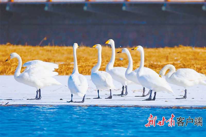 张掖黑河水域的白天鹅。新甘肃·甘肃日报通讯员 张旭