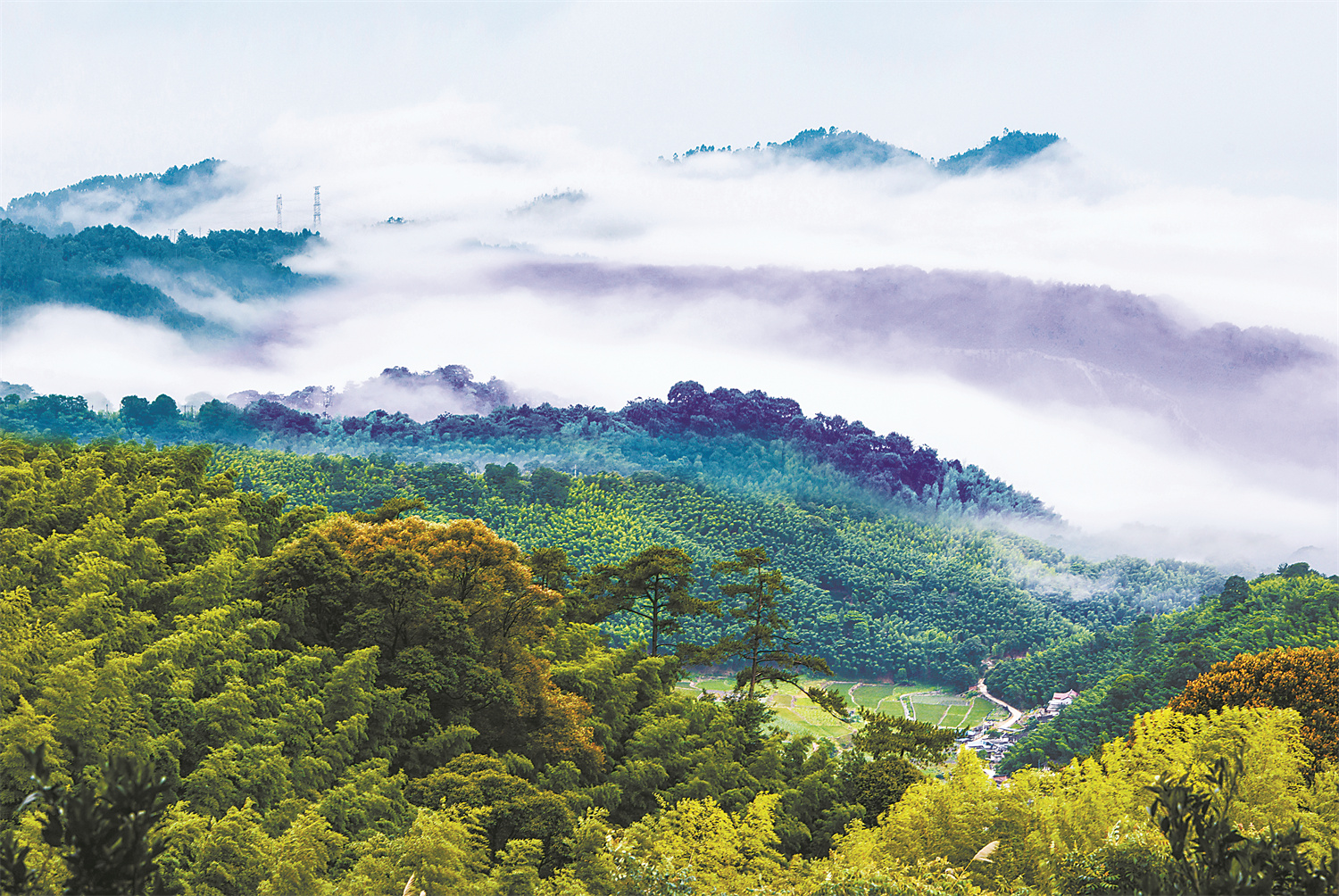 目前,我国广大集体林区扩绿、兴绿、护绿“三绿”并举,森林水库、钱库、粮库、碳库“四库”联动,深化集体林改新蓝图正在加速转化为生态美百姓富实景画。