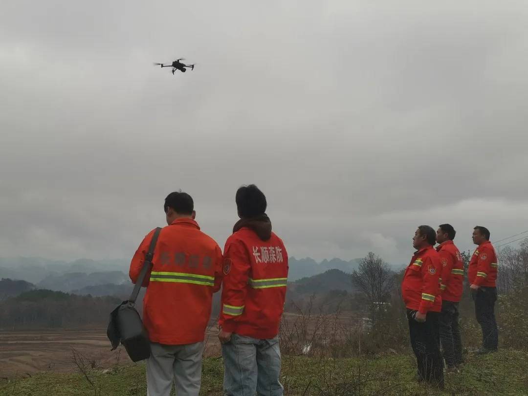 贵州省长顺县敦操乡林业工作站工作人员开展无人机巡护与培训演练工作(供图:贵州省长顺县林业局)