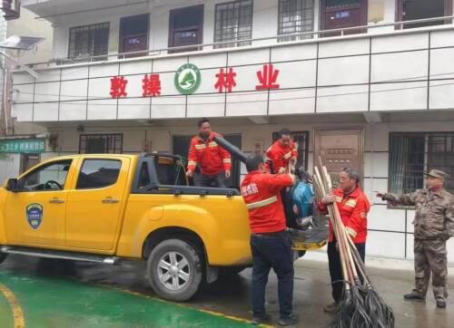 贵州省长顺县敦操乡林业工作站工作人员准备外出开展森林防火巡逻与宣传工作(供图:贵州省长顺县林业局)