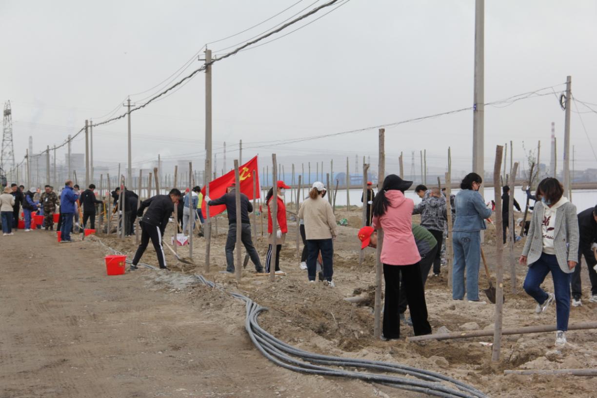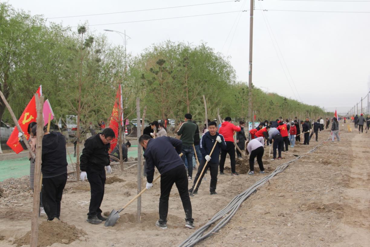 活动现场广大干部群众挥锹铲土、扶树正苗、踩实新土、浇水定根,合力栽下一株株绿色的希望。