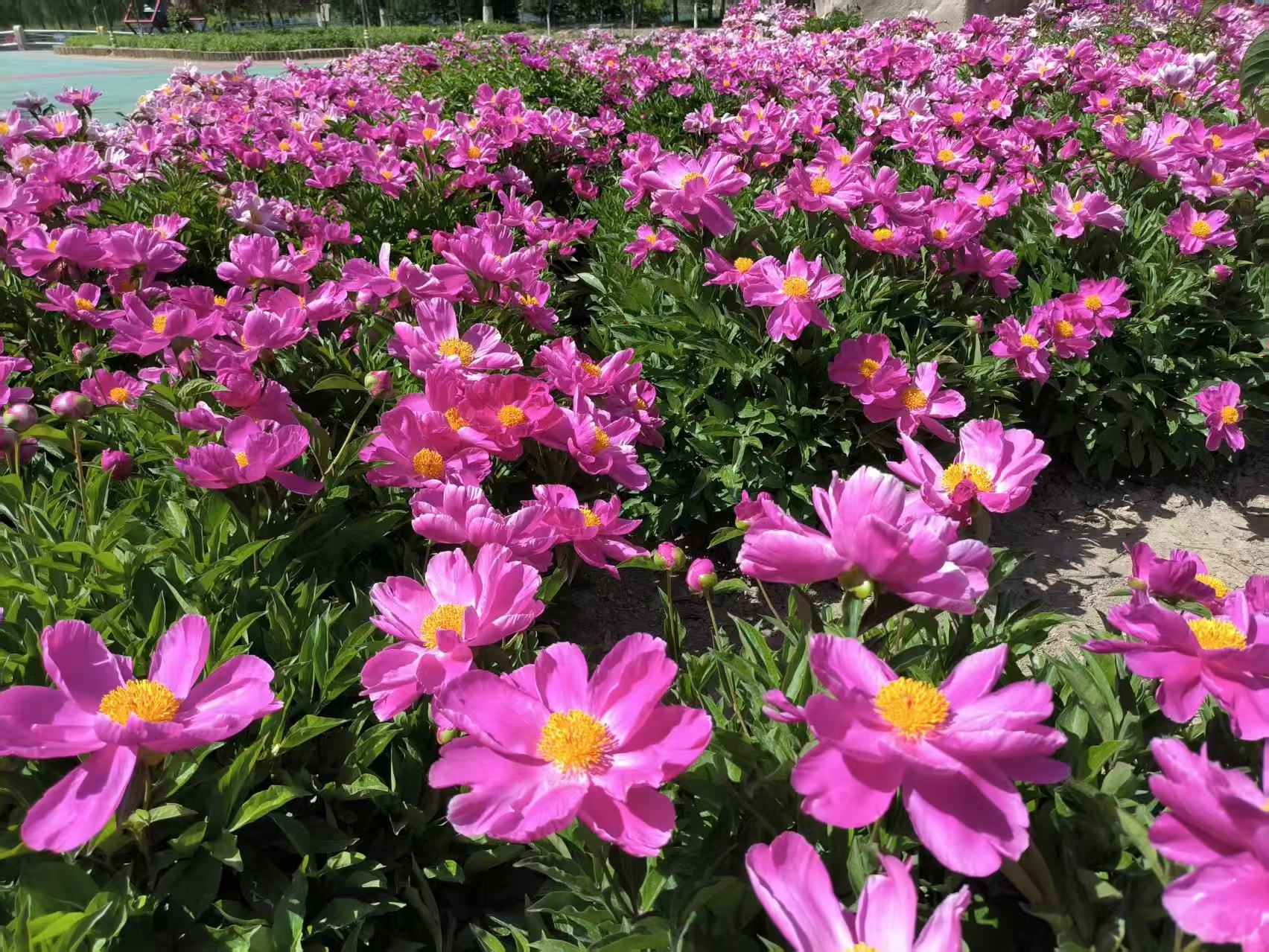 远远望去,花海一片,红的、白的、粉的,相映成趣。走近了,但见那芍药含苞待放,摇曳生辉,香气扑鼻。花瓣层层叠叠,如丝绸般光滑,细腻而华丽。在阳光下泛着微光,花蕊金黄,点缀其中,煞是好看。游人纷纷举起手机,或自拍,或拍花,或合影,忙得不亦乐乎。