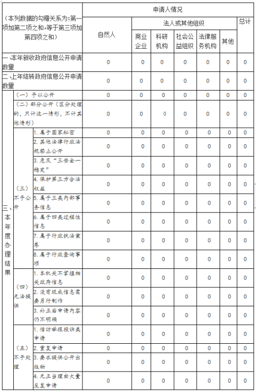 根据《中华人民共和国政府信息公开条例》编制此报告,报告由总体情况,主动公开政府信息情况,收到和处理政府信息公开申请情况,政府信息公开行政复议、行政诉讼情况,存在的主要问题及改进情况,其他需要报告的事项等七部分组成。本报告所列数据的统计期限自2020年1月1日起至2020年12月31日止。