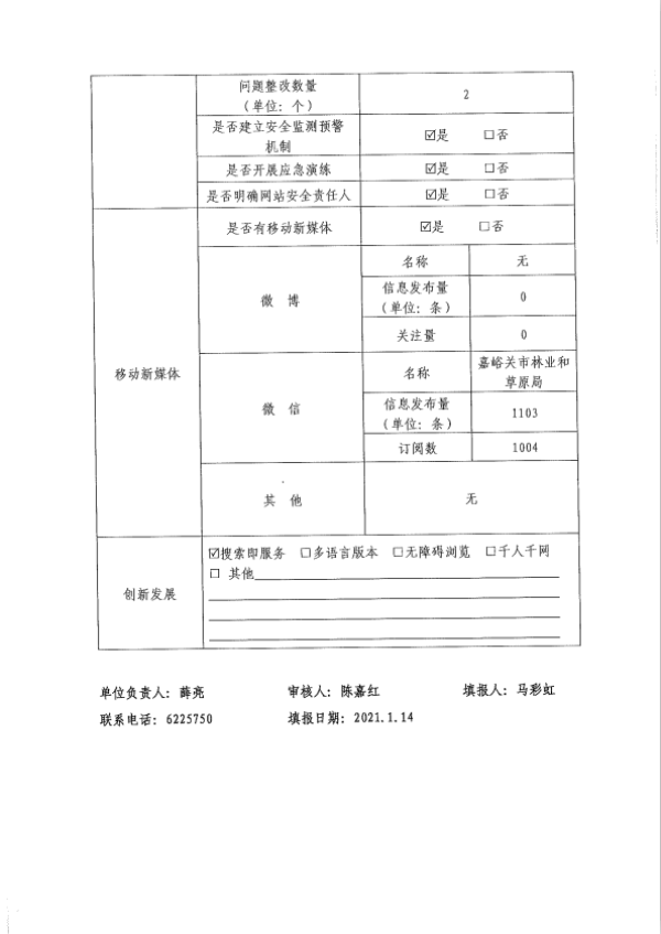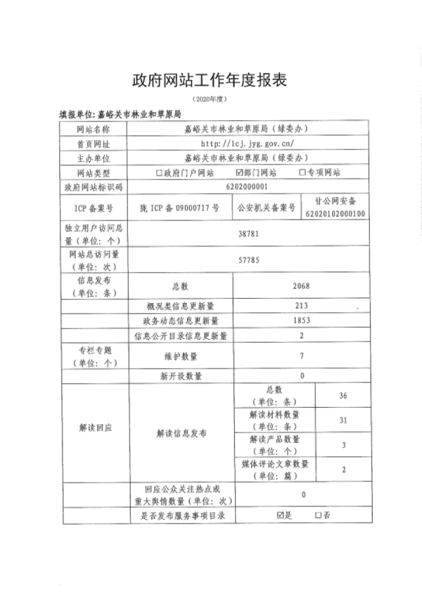 嘉峪关市林业和草原局2020年政府网站工作年度报表