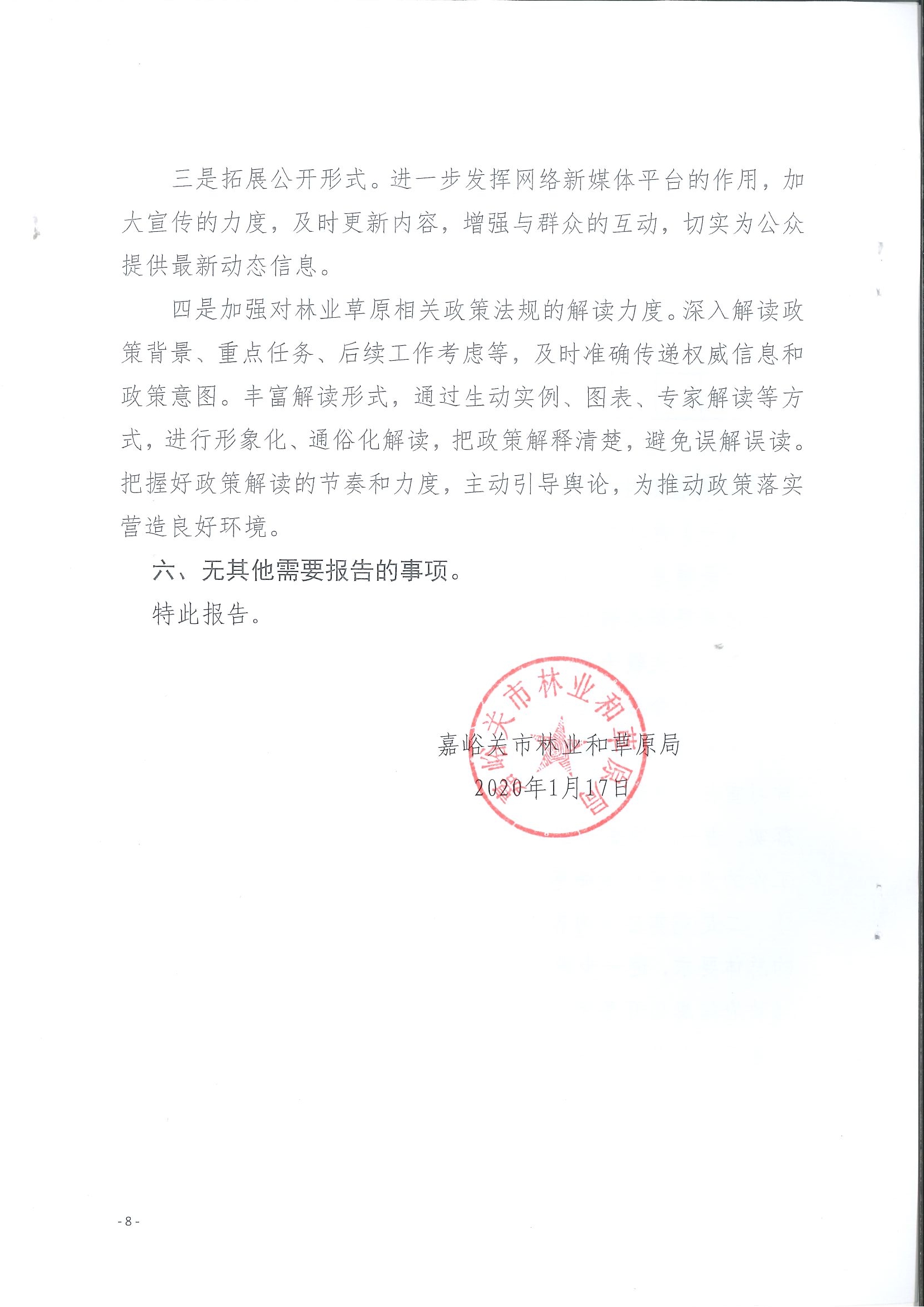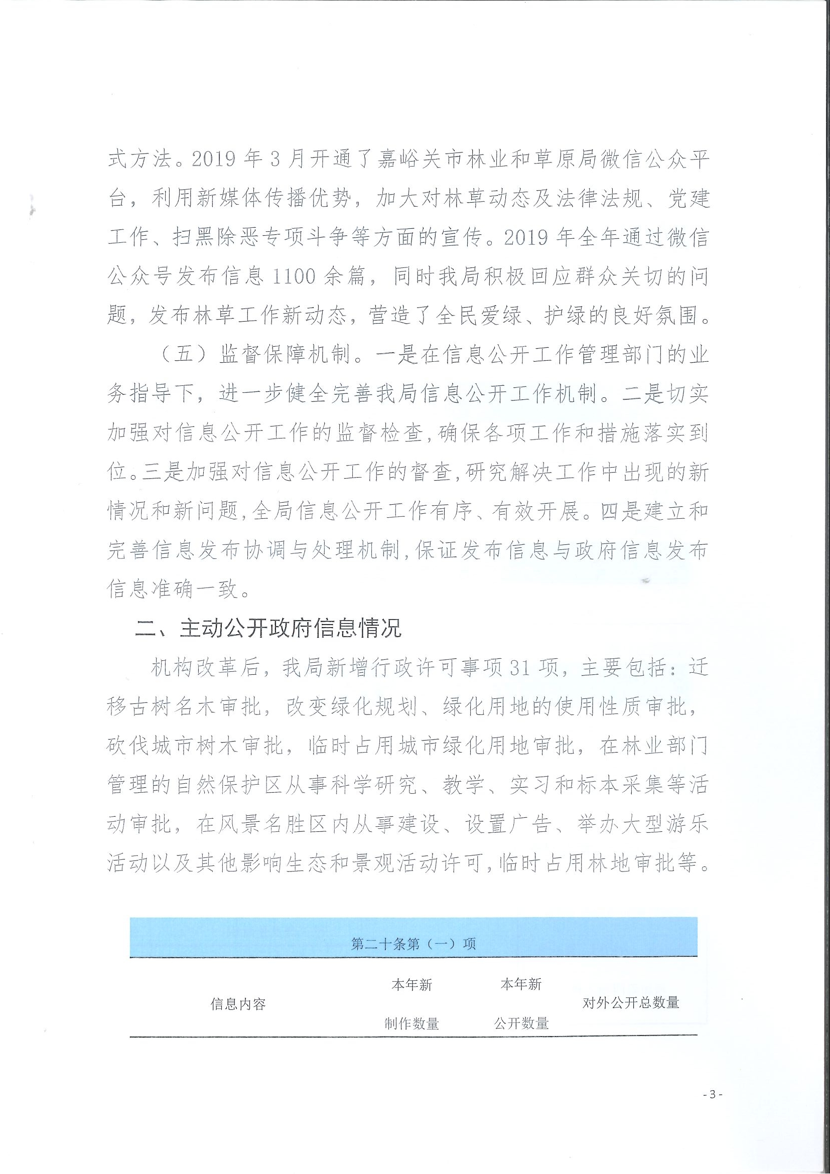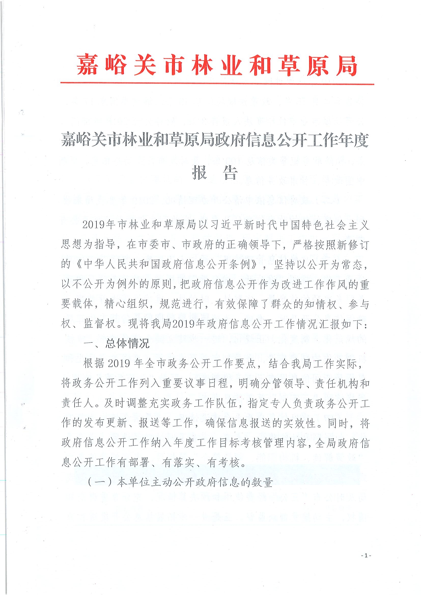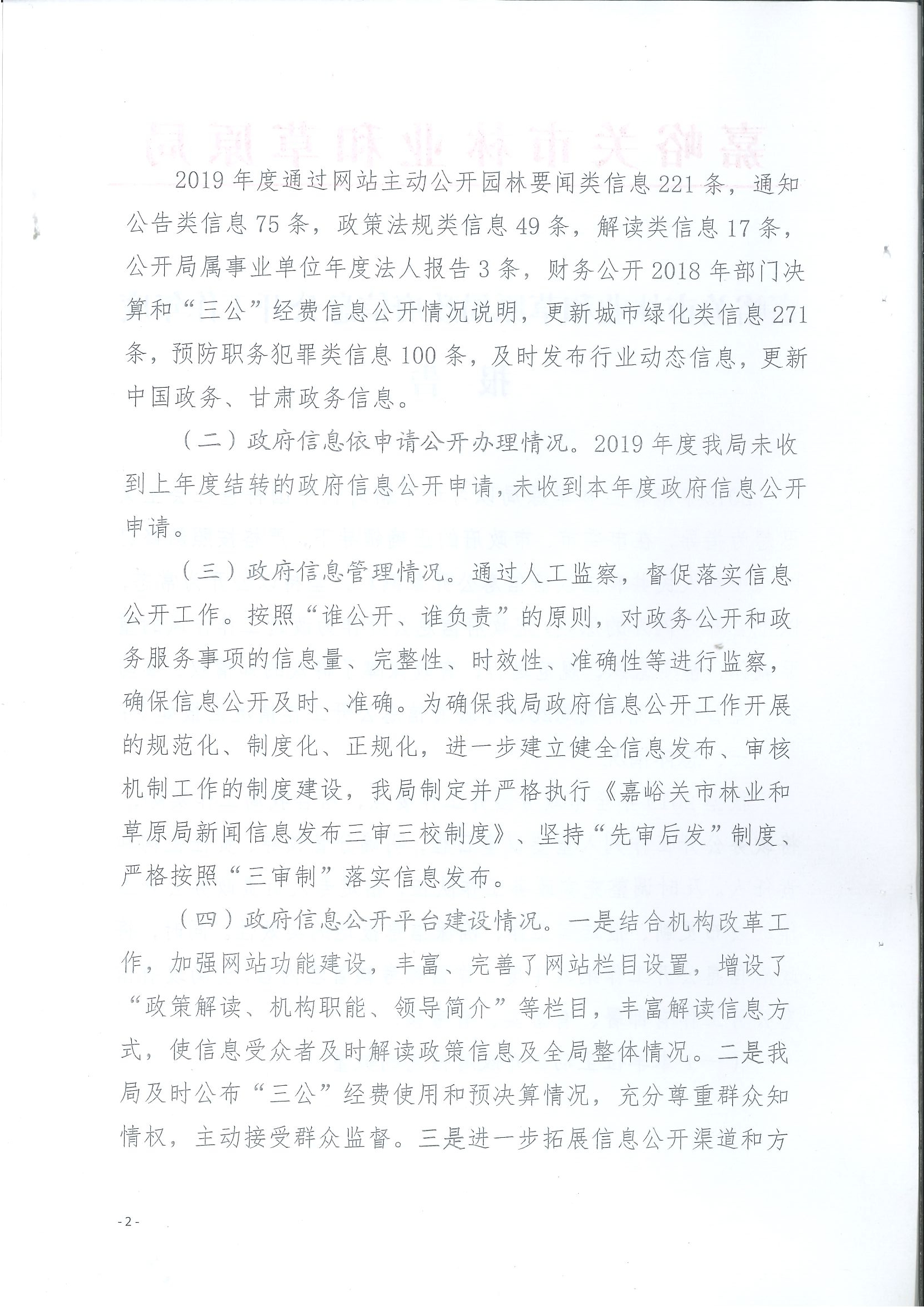 嘉峪关市林业和草原局政府信息公开工作年度报告