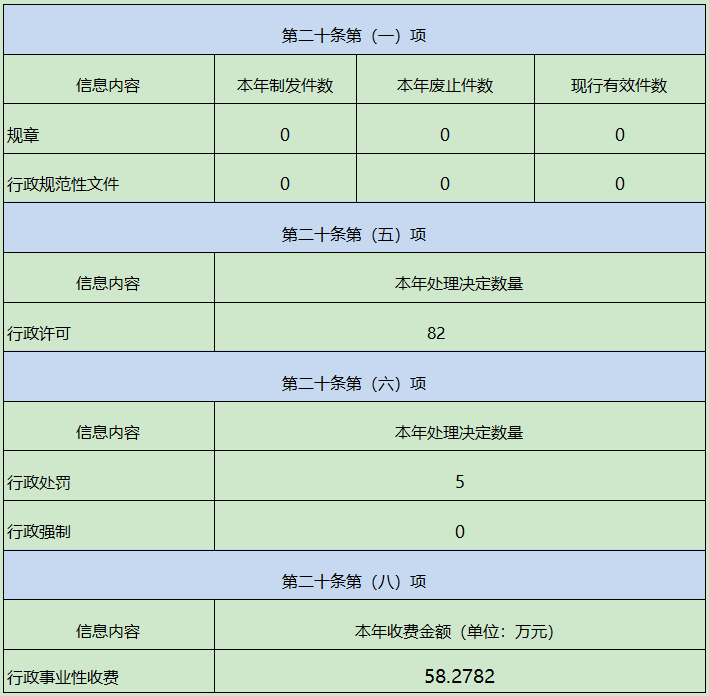 信息内容 | 本年制发件数 | 本年废止件数 | 现行有效件数 |