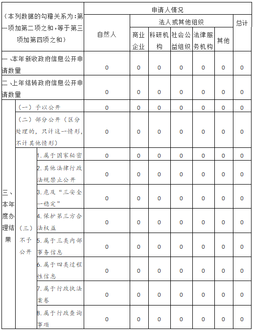 一、本年新收政府信息公开申请数量 | 0 | 0 | 0 | 0 | 0 | 0 | 0 |