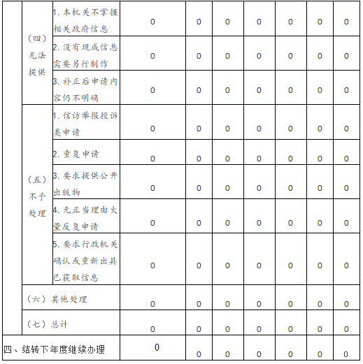 二、上年结转政府信息公开申请数量 | 0 | 0 | 0 | 0 | 0 | 0 | 0 |