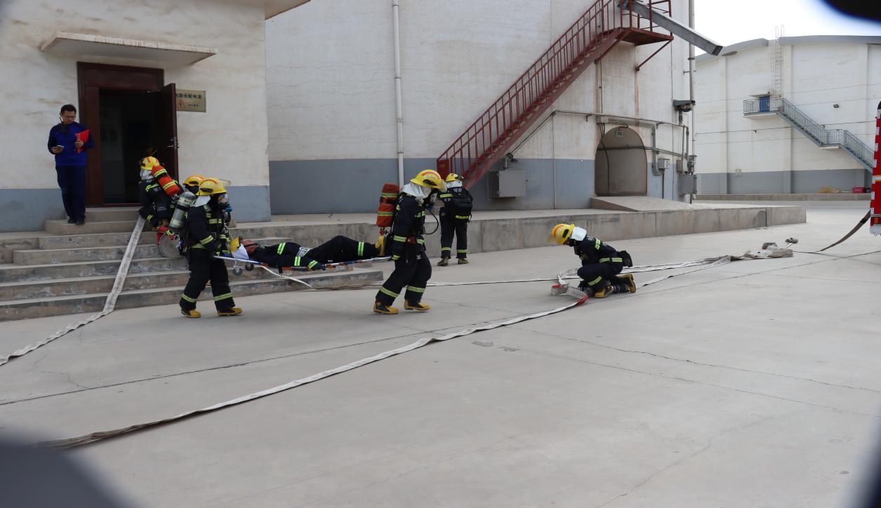 本次应急演练模拟公司仓储部工作人员在从事粮食进出库作业时发现浅圆仓配电室起火后,本单位义务消防员被困,紧急启动灭火应急预案和应急救援机制,联合消防救援人员共同开展灭火和应急救援行动。