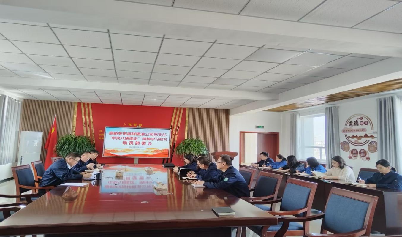 3月20日,嘉峪关市裕祥粮油公司党支部召开党员大会,深入学习贯彻习近平总书记关于加强党的作风建设的重要论述,认真落实中央、省委、市委和市粮食和物资储备局党组会议部署要求,对裕祥粮油公司开展深入贯彻中央八项规定精神学习教育工作作出安排。