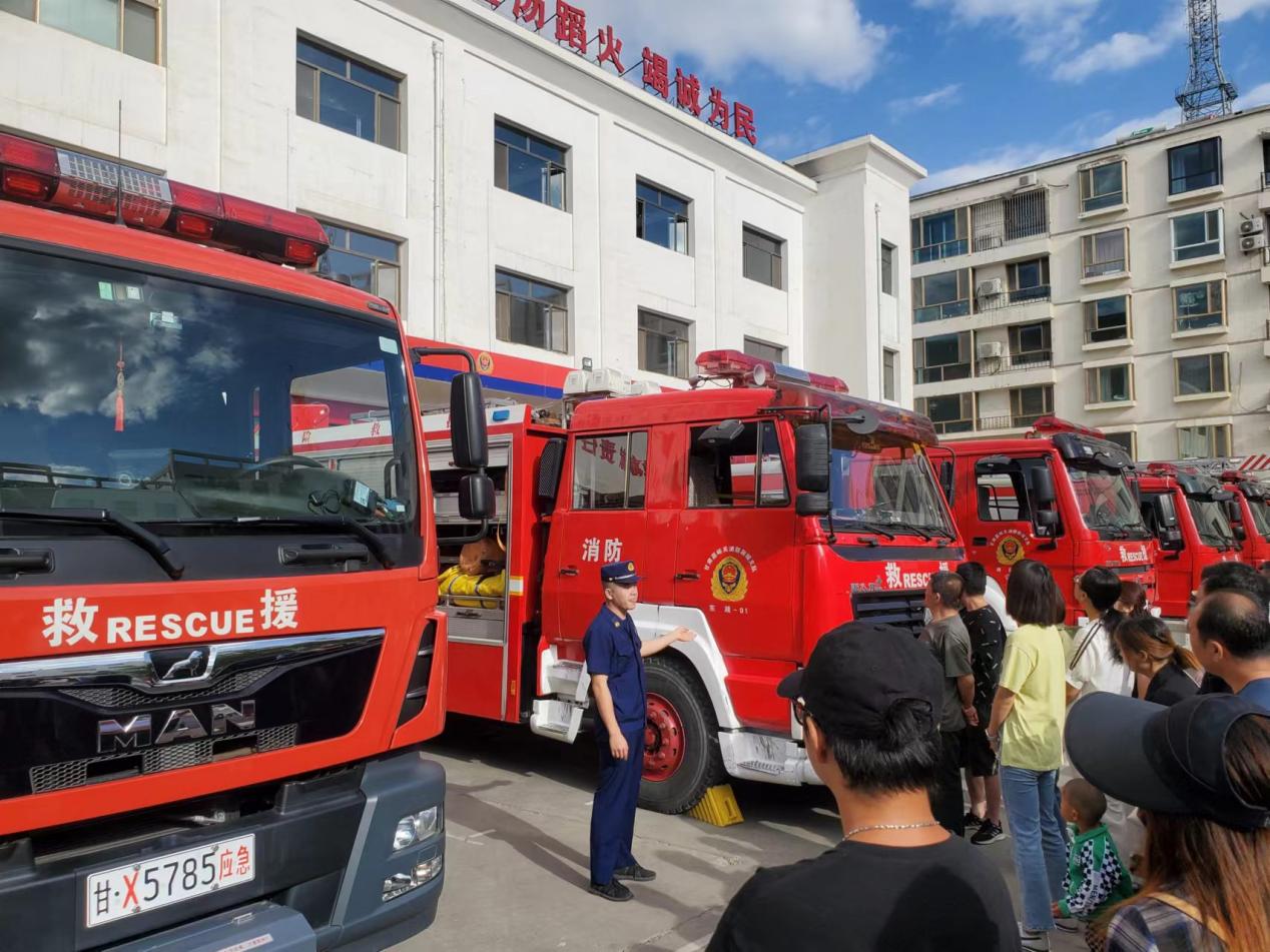 活动现场,消防队员带领大家参观了站内的车辆、器材及装备,介绍了各类常用抢险救援器材、灭火器材及消防车的操作、性能和使用情景;同时向大家展示了消防队员们的日常训练内容,近距离感受消防战士的训练日常;最后,消防队员在院内演示了室内消防箱及灭火水枪的安装及操作,并就办公场所消防日常管理、检查及消防器材的正确使用方法等进行了详细讲解。