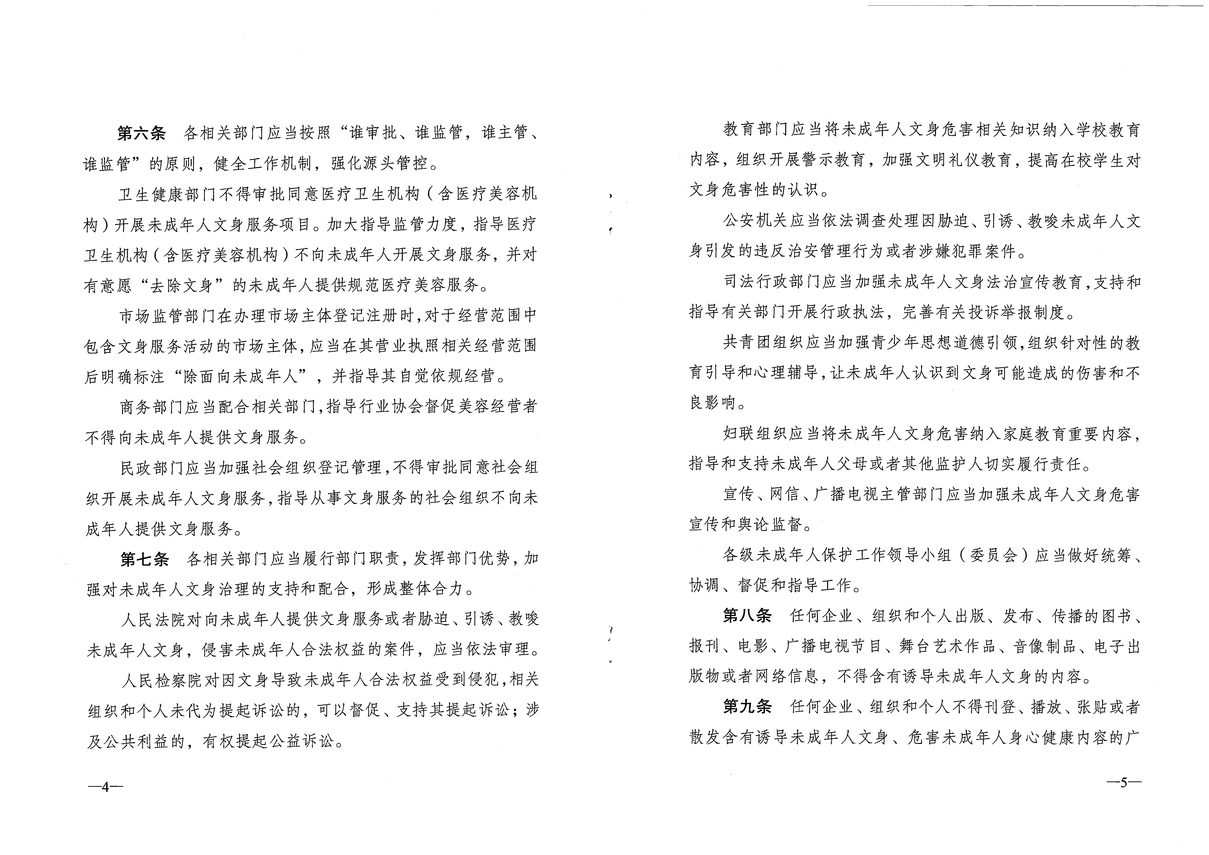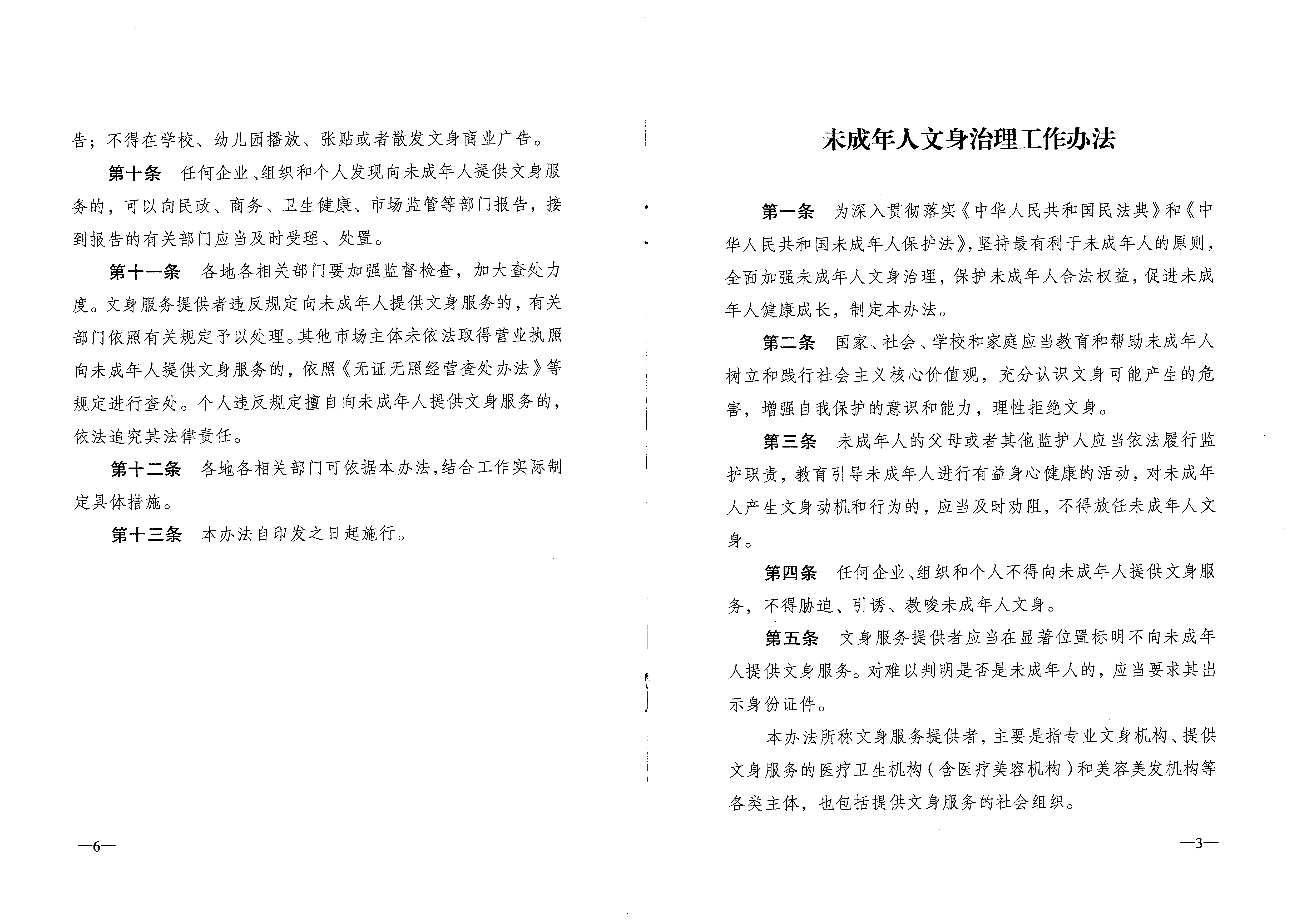 门责任,加大宣传力度,加强支持配合,推动未成年人文身治