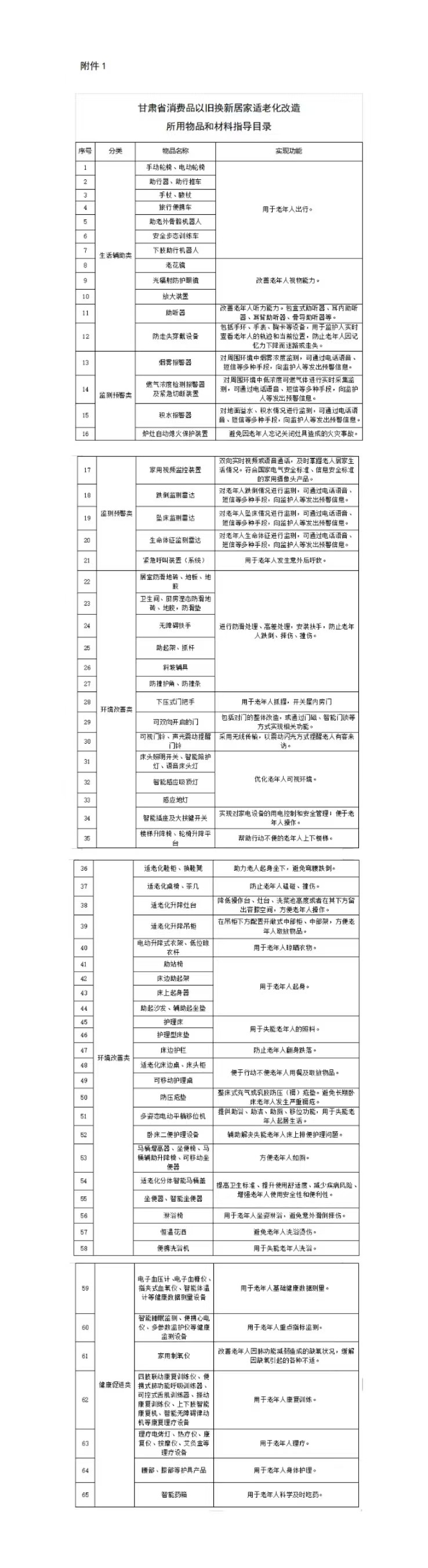 附件1:甘肃省消费品以旧换新居家适老化改造所用物品和材料指导目录.doc