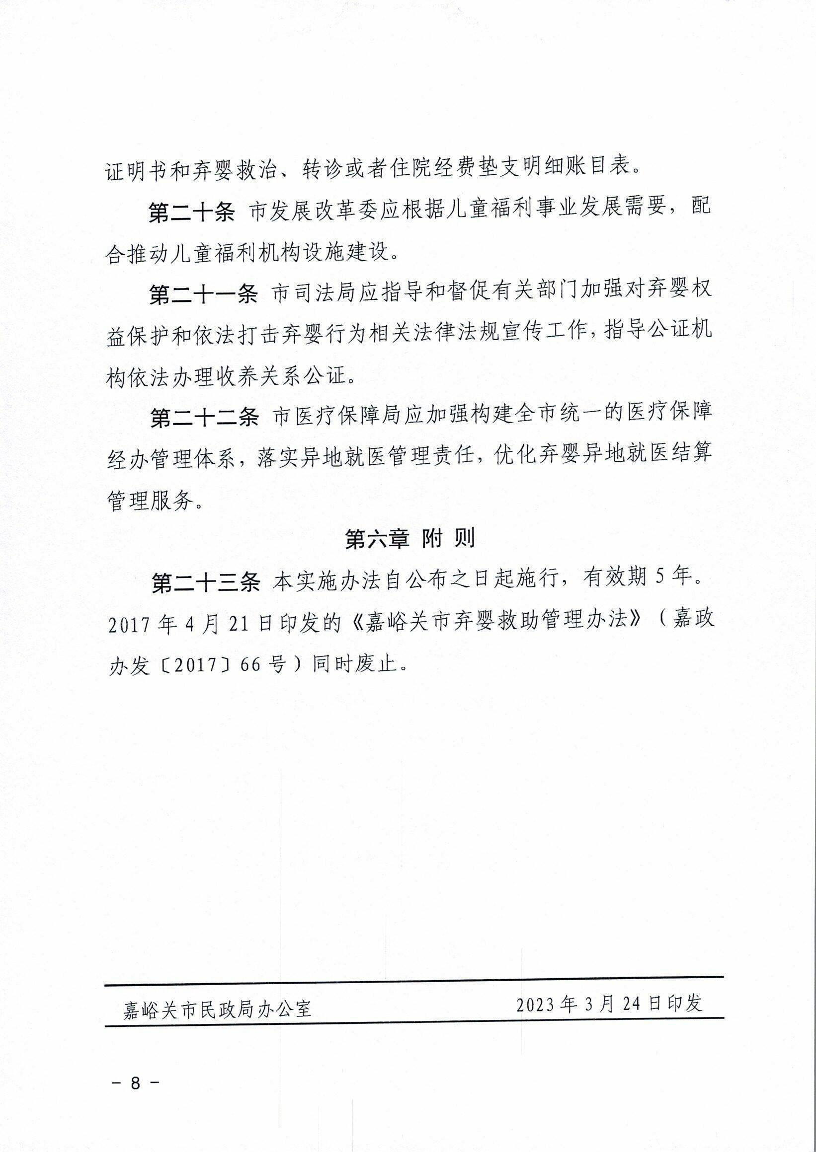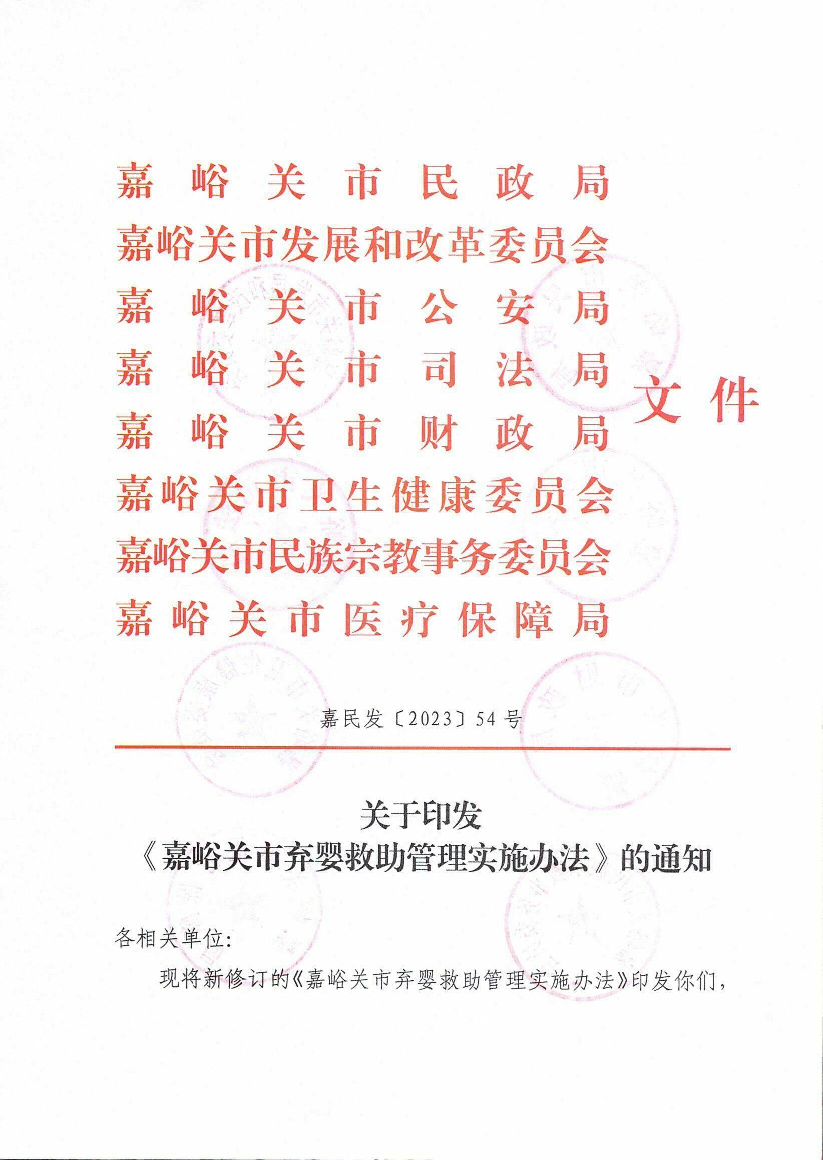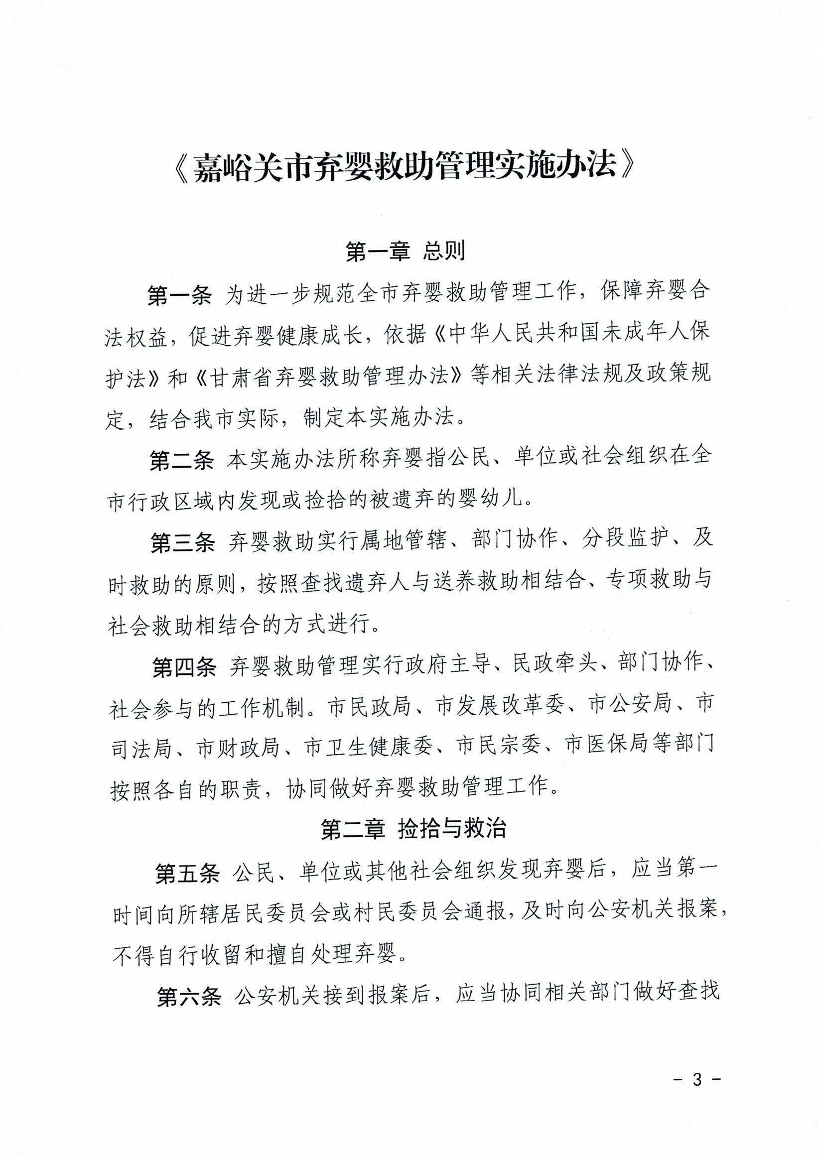 关于印发《嘉峪关市弃婴救助管理实施办法》的通知