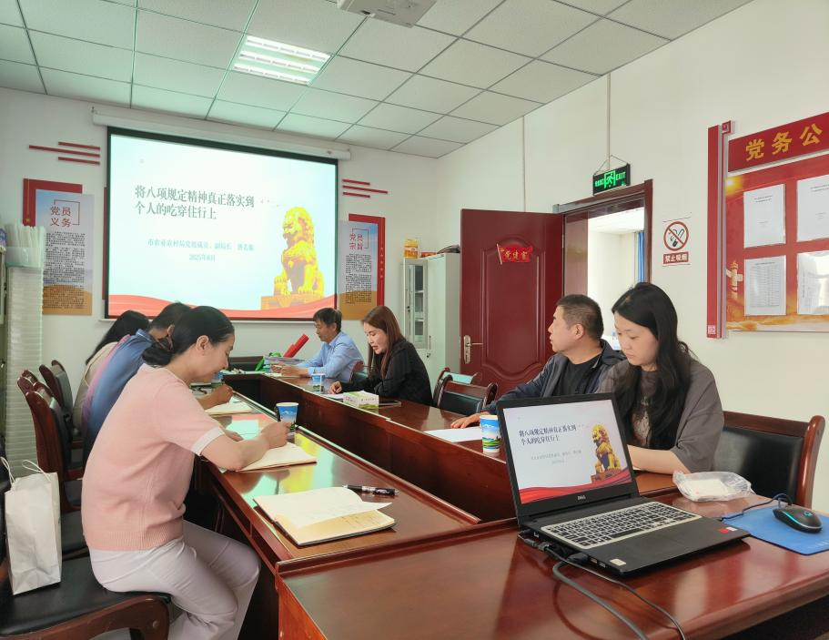 为扎实推动深入贯彻中央八项规定精神学习教育走深走实,强化党员干部纪律意识和作风建设,6月5日,市农业农村局党组成员、副局长唐若旎同志为市种子管理站党支部、市农广校、市农业经济管理站开展了“将中央八项规定精神真正落实到个人的吃穿住行上”专题党课辅导。